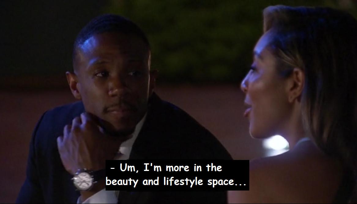 This kind of immovability is highly unusual for a Bachelorette who’s dating people from all over the country, and at some point soon, it needs to be discussed. This is a determining factor the likes of which we haven’t seen since Chris Soules was looking for a wife to mend his farming overalls or whatever. I’m sure Tayshia liked her pre-Bachelor career as a phlebotomist, but I also think she was more than willing to make a transition into “the beauty and lifestyle space” when The Bachelor made that transition available to her.