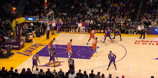 In the image above, LeBron is running a high pick-and-roll with Davis. Before James even dribbles, Suns wing Mikal Bridges is standing at the free throw line ready to clog the paint. James drove into him anyway and eventually turned the ball over. No one is defending Westbrook.
