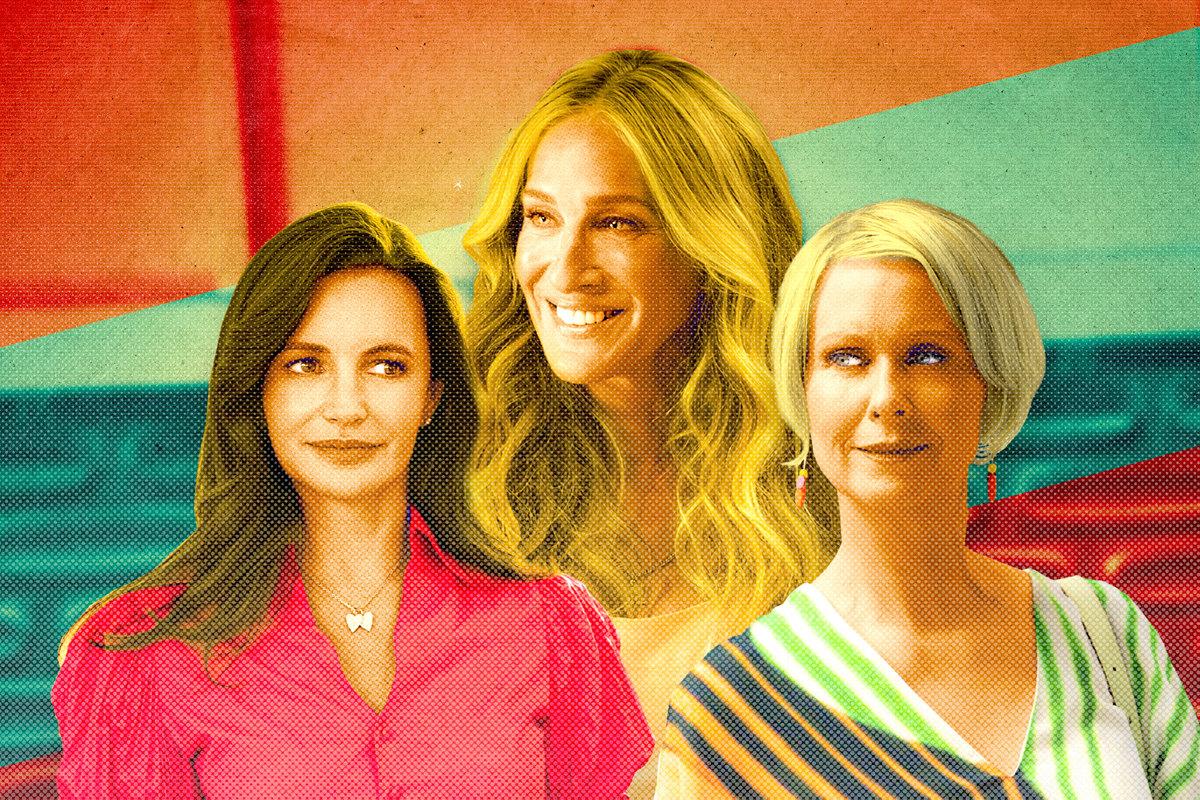 Not 30 seconds into And Just Like That …, the follow-up series to Sex and the City, Carrie Bradshaw (Sarah Jessica Parker) heaves a sigh. She’s waiting for her party of three—not four—to be seated at Clee, a fictional restaurant New Yorkers in the know will recognize as the Whitney Museum’s lobby café. The original, Barefoot Contessa–ish theme music plays, updated for the EDM age with a pulsing beat. Ducking and weaving through the crowd, Carrie finds her two—not three—closest friends, Charlotte York (Kristin Davis) and Miranda Hobbes (Cynthia Nixon). She’s relieved, but exasperated. “Remember when we legally had to stand 6 feet apart from one another?” she asks. “I miss it.”