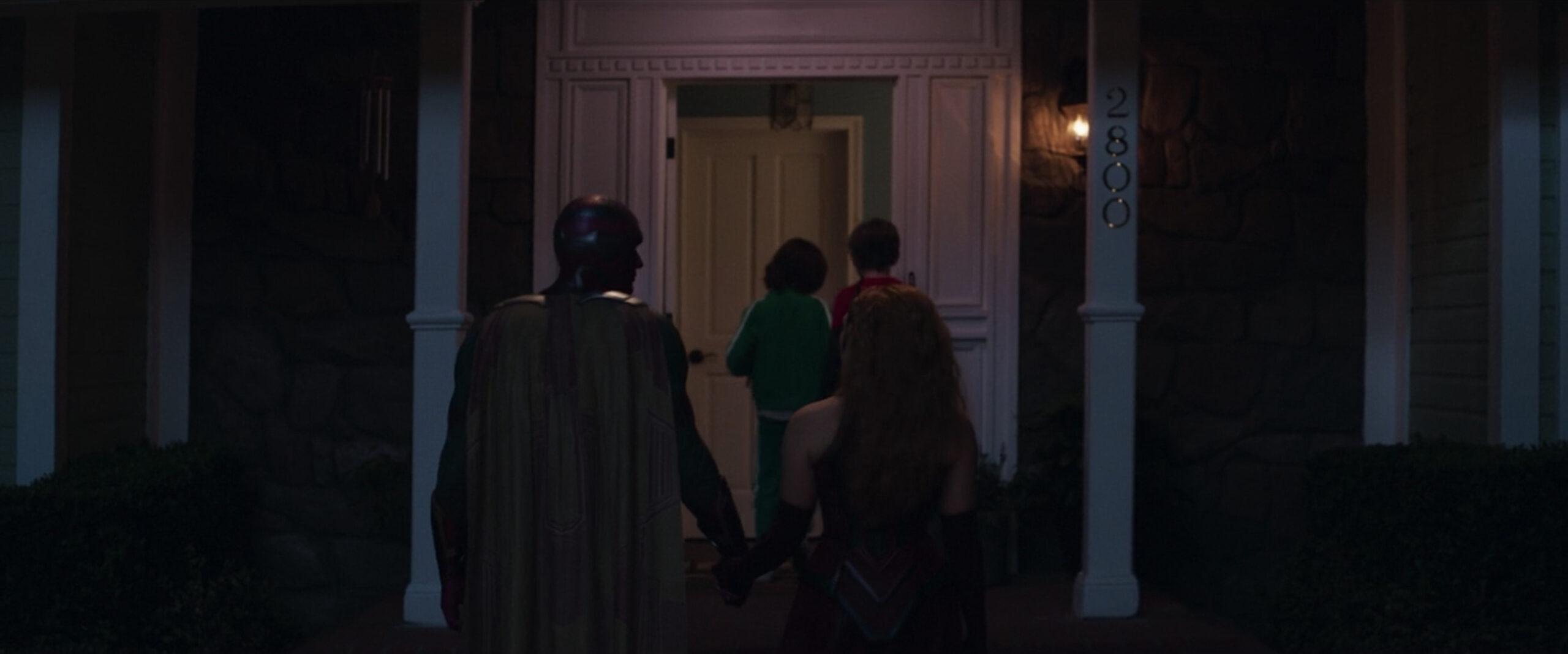 With Agatha neutralized, Wanda chooses a fitting role for her as punishment: the nosy neighbor, Agnes. Wanda then begins the countdown on Westview, shuttering her hex around the town and finally putting a stop to all the pain and destruction she’s caused. The Maximoff family returns to their Westview home one last time to say their goodbyes. For Wanda and Vision, this time, at least they can do it on their own terms. Vision asks his creator what he is, and Wanda replies: “You, Vision, are the piece of the Mind Stone that lives in me. You are a body of wires, and blood, and bone, that I created. You are my sadness and my hope. But mostly, you’re my love.”