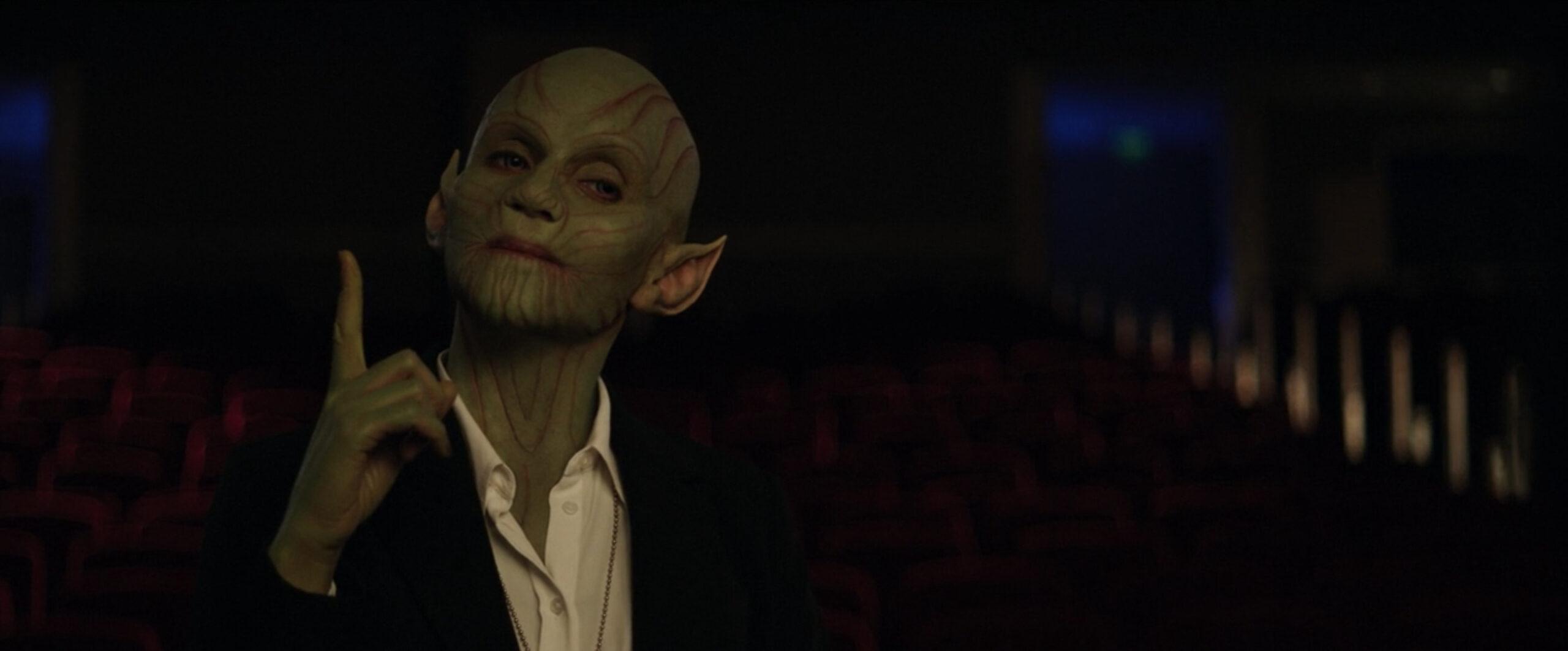 The first of two stingers focuses on Monica Rambeau. With Jimmy Woo and the FBI cleaning up the mess in Westview (including arresting Hayward for his terrible “Vision” pun), Monica is pulled aside by an agent who tells her that she’s needed in the movie theater. But the theater is completely empty. “I was sent by an old friend of your mother’s,” the agent says as her face shape-shifts into its natural alien form. “He heard you’ve been grounded. He’d like to meet with you.”