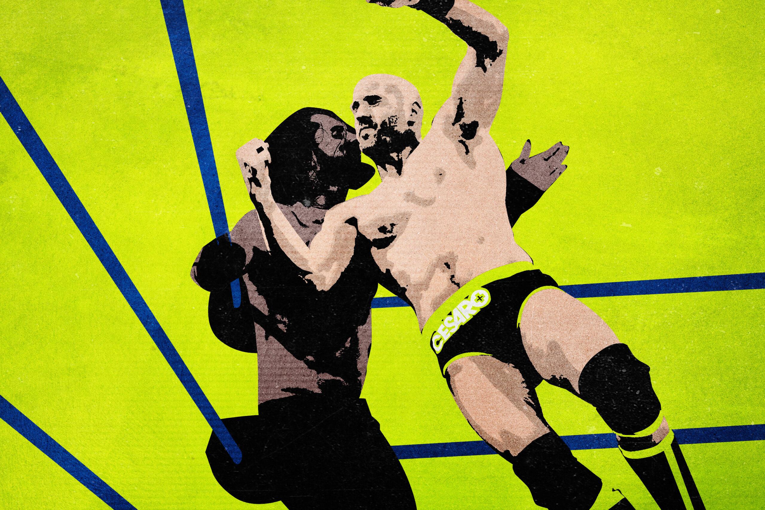 He has an array of suplexes at his command, perhaps the most impressive being a deadlift gut-wrench suplex. There’s no covert help from the opponent, no momentum to use: All the heavy lifting has to be done by Cesaro, who will often pause to demonstrate his total control over the dead weight of his foe before tossing him to the mat. It’s so legitimately impressive—like so much that he does—that it can sometimes get lost among the choreographed superheroics of WWE television.