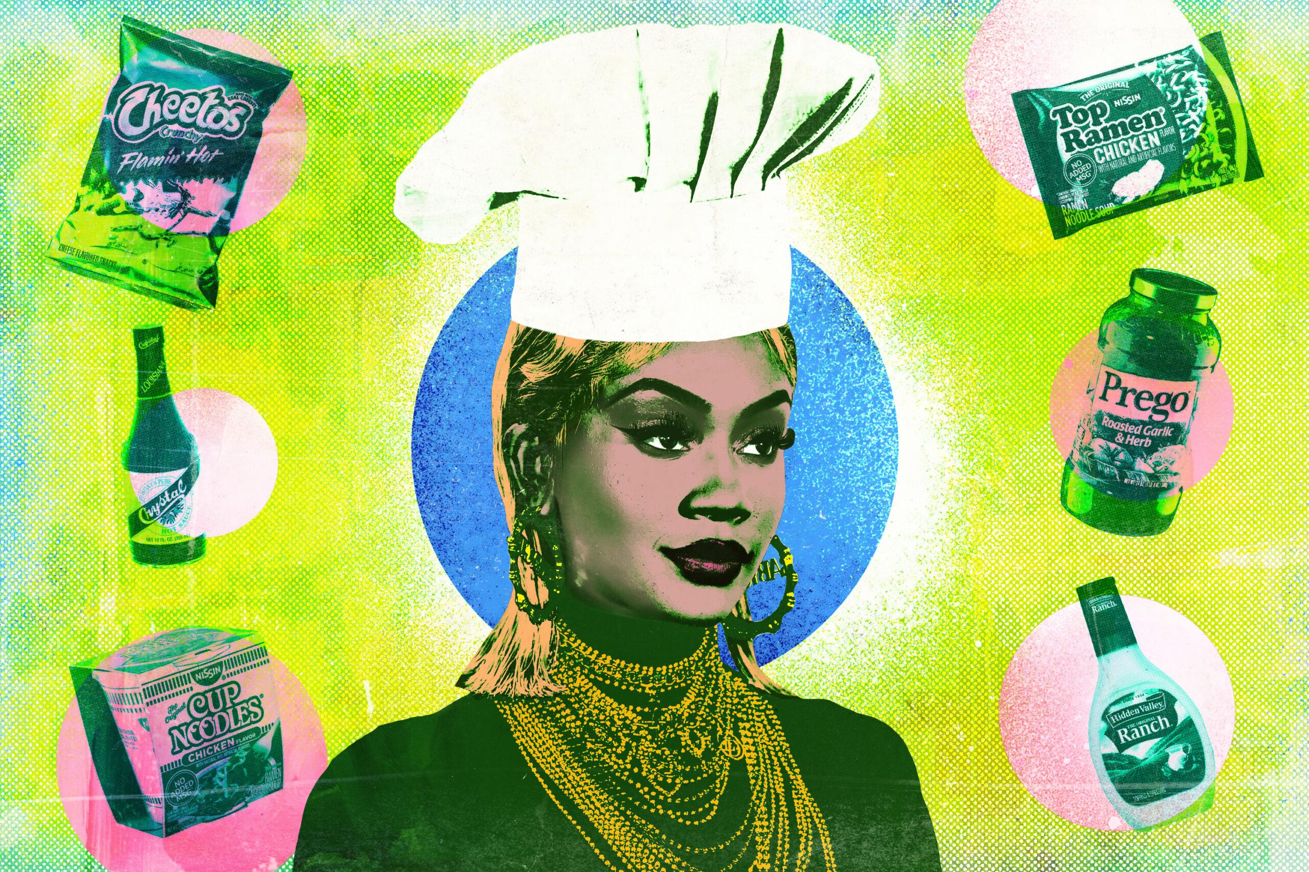 When Saweetie debuts a new recipe on social media, the world shakes with fear, trepidation, and excitement. Like an alchemist, Saweetie is unafraid of tempting the boundaries of experimentation. Ketchup and barbecue sauce drench seafood; Flamin’ Hot Cheetos sit on the rim of mixed drinks, forcing salt and sugar off their long-held throne; and McGangbangs aren’t reserved for the days of misguided adolescent youth. Saweetie’s cooking philosophy feels like it’s culled from the Top Chef quick-fire challenges of yore. It’s as if the spirit of Tom Colicchio is constantly on her shoulder, challenging the 27-year-old to concoct new recipes using only items you could buy at a gas station or from a vending machine.