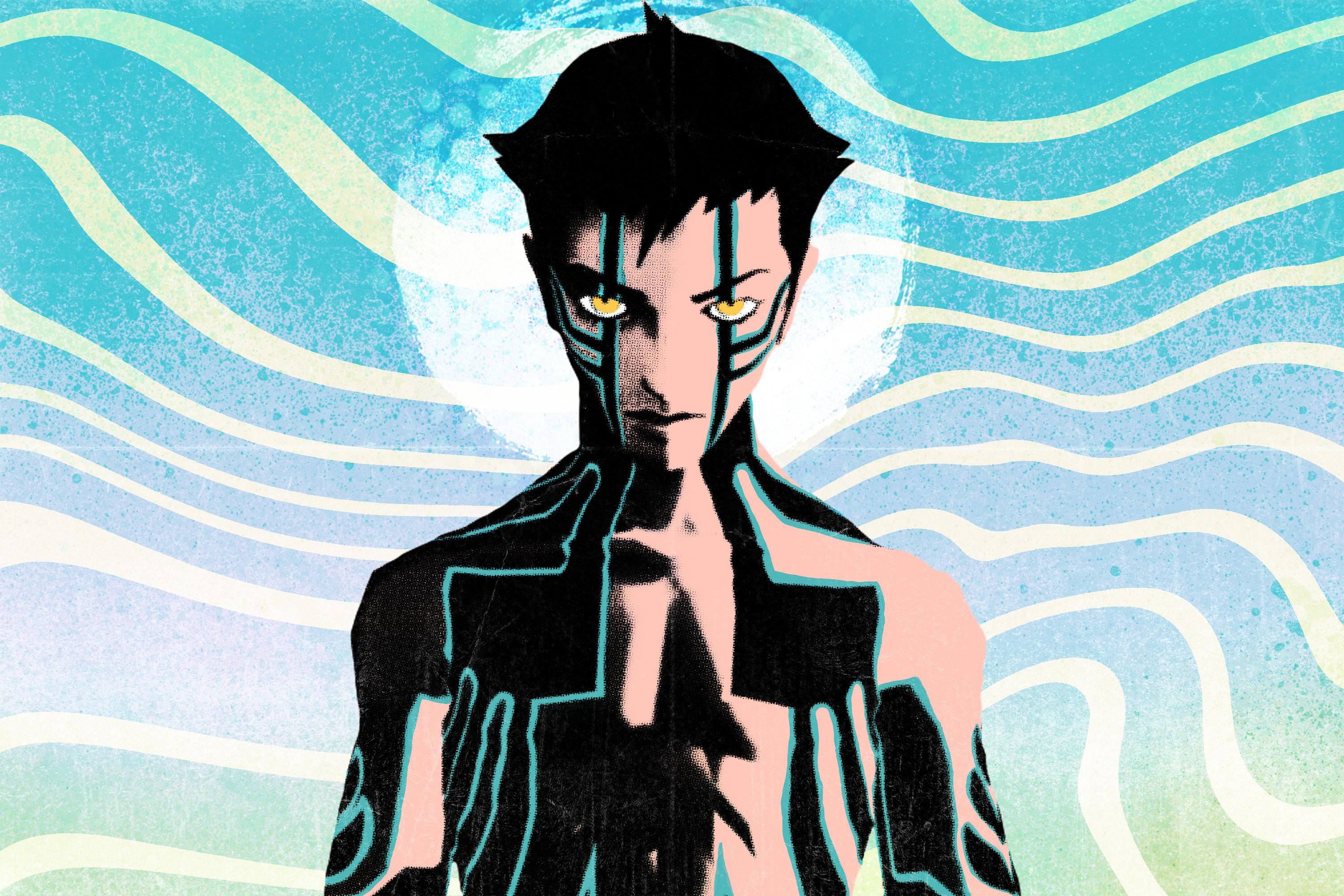 The high school student Naoki emerges from a subway station as he’s rushing to meet his friends around town. His friends aren’t very friendly, though, and their teen dickishness will prove disastrous in due time. Gathered together in an abandoned hospital, Naoki, his classmates, their homeroom teacher, and a couple of mysterious strangers witness a global cataclysm known as the Conception, which wipes humanity from the earth. But the Conception spares the hospital, and so the few humans there emerge unscathed into the new world. Down in the morgue, Naoki meets two mysterious figures who persuade him to swallow a large parasitic worm, called a magatama, which makes Naoki half man, half demon. He’s now tattooed from head to toe in neon stripes. He’s able to regurgitate the parasite he’s ingested and consume the others that he acquires during his postapocalyptic travels. But Naoki can’t reverse his transformation. Henceforth, he’s known as the Demi-fiend.