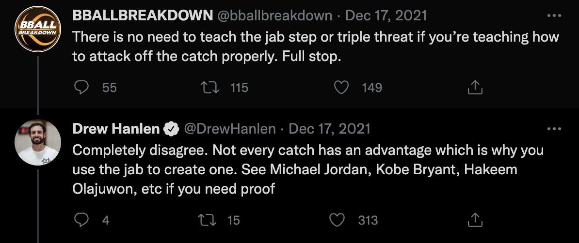 Watching Jabari shoot without a dribble, I immediately wondered whether he was a student of Drew Hanlen, who seems to key on no-dribble jab steps in his training curriculum.