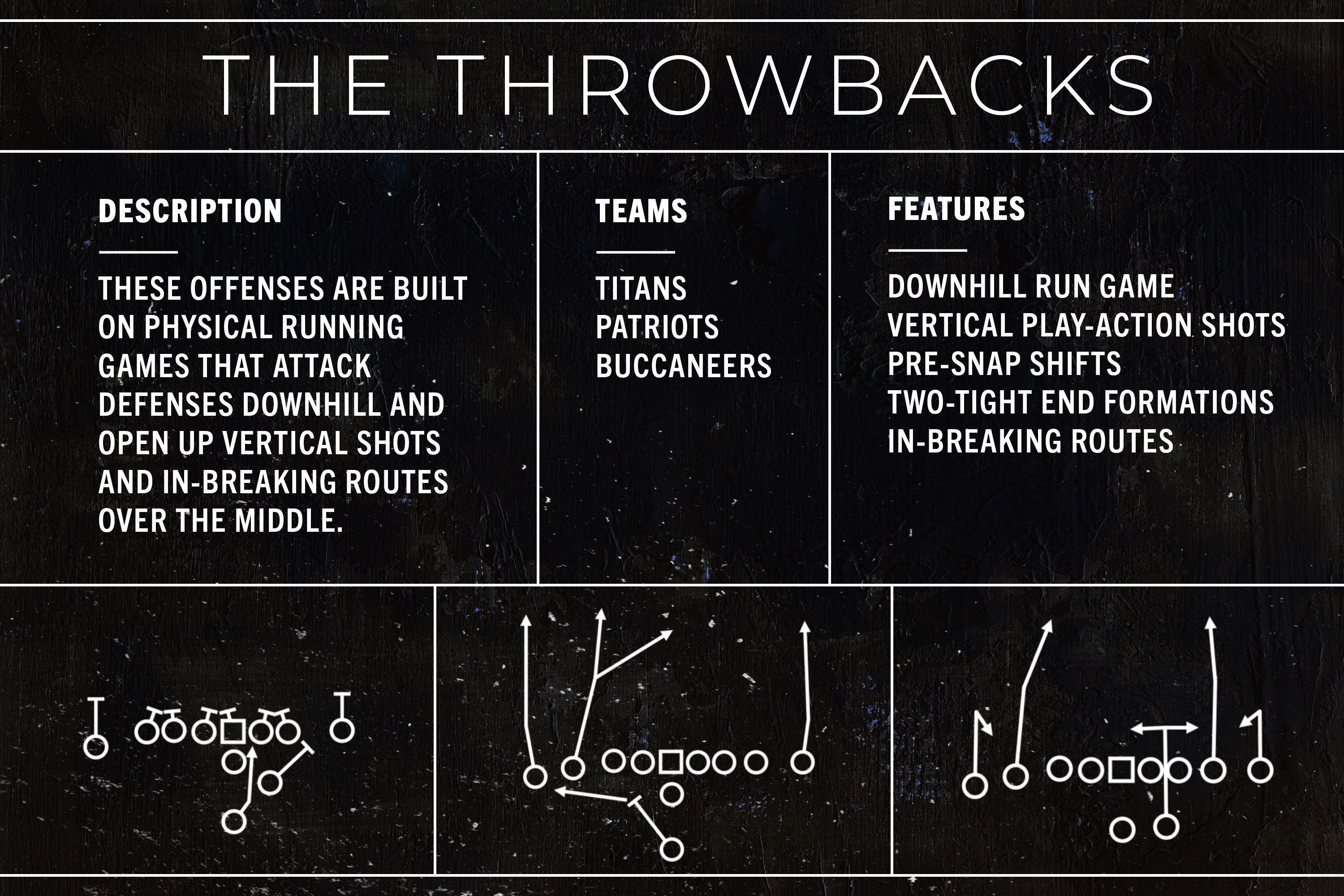 These concepts are taken from the offenses that used to dominate the NFL, but at this point, they may be even more singular than some of the newer systems we’ve already discussed. Compared to the other offensive families, it’s harder to point to one or two key features that describe these units’ underlying philosophies. That’s because they do a bit of everything.
