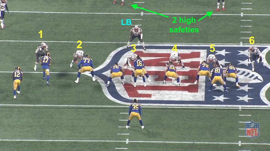 To build this approach, Belichick borrowed heavily from Chicago Bears defensive coordinator Vic Fangio, who held the Rams offense to only six points during the regular season, but the entire NFL was watching when the league’s preeminent defensive mind suffocated what had previously been an offense without an answer. Belichick laid the blueprint, and all of a sudden, the Rams saw it everywhere they went. In 2019, every defense facing the Rams deployed heavy fronts with two deep safeties behind it.