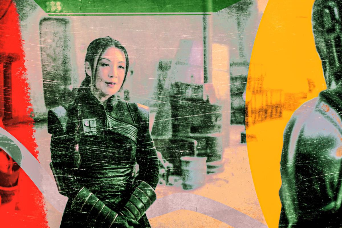 Tatooine is no longer lawless enough to get away with this stunt. Amusingly, Mando gets pulled over for speeding by two New Republic pilots, one of whom is none other than Captain Carson Teva, who helped Mando escape the ice spiders in The Mandalorian Chapter 10 and then popped up two episodes later to recruit Cara Dune (before Gina Carano was canceled). (The other pilot is played by Max Lloyd-Jones, Mark Hamill’s body double in The Mandalorian.) In space, officers can’t ask starfighter pilots to step out of their vehicles, but when the pilots threaten to seize his controls and pose some uncomfortable questions, Mando engages his afterburner and leaves the X-wings way behind. This scene, like quite a few others in this episode, is funny in a way that Book of Boba has trouble pulling off with its two stoic leads. When Boba quipped, “Next time, don’t touch my buttons” after Shand dropped the seismic charge last week, it felt like a sporting but too-late attempt to loosen up protagonists who aren’t really built for banter (with each other, at least). “Return of the Mandalorian” also marked the return of greater range and nimbleness in setting and tone, thanks in no small part to Amy Sedaris’s zany, un-Fett-like energy.