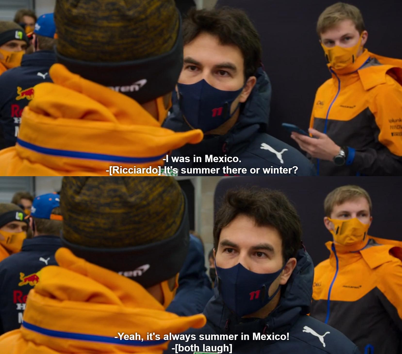 Best moment: My favorite running Drive to Survive bit is Checo having to explain Mexico to the rest of Formula One.