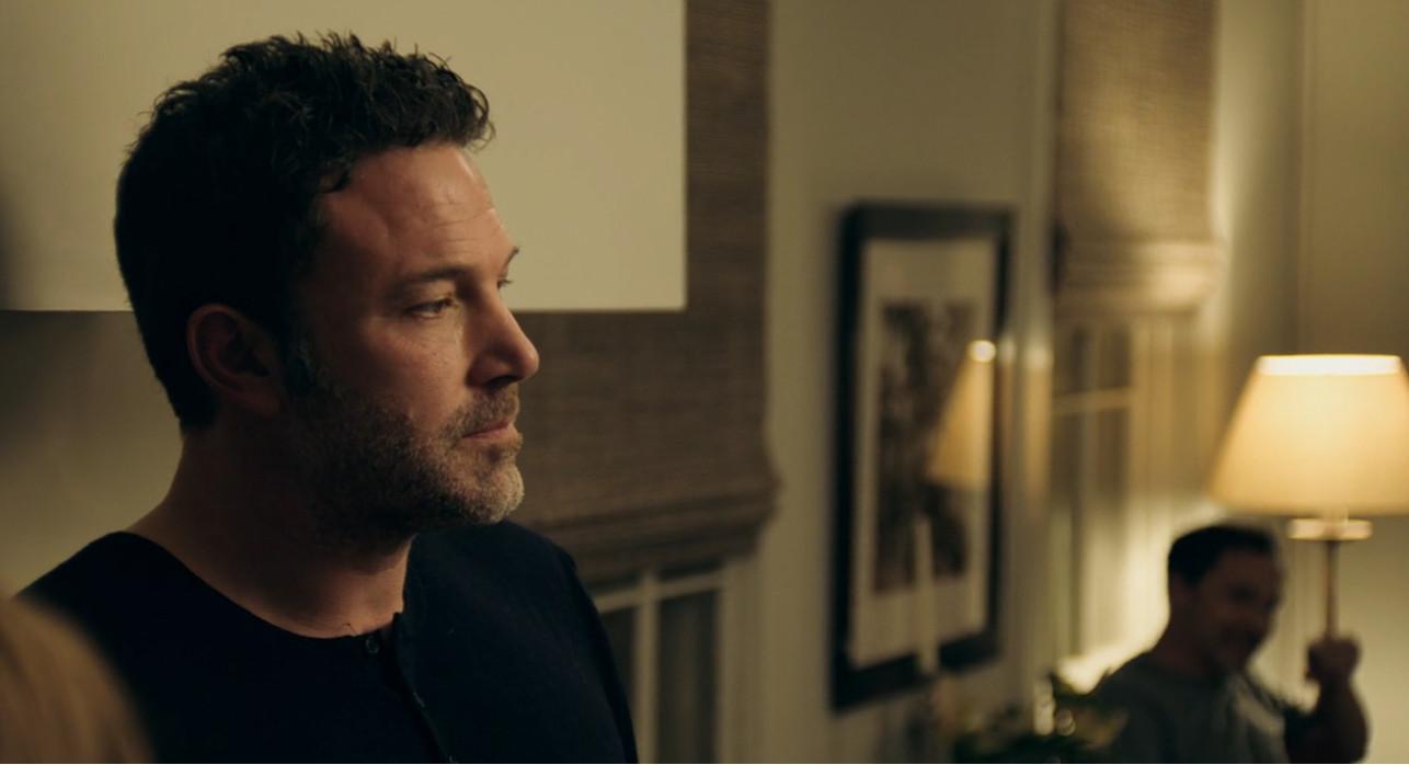 The first thing we see de Armas do as Melinda is sexily lounge on an outdoor staircase contemplating her broken husband. The first thing we see Affleck do as Vic is toe off the biking shoes he’s been wearing without socks, and strip off loose, sweaty bike pants. It’s very important to this movie that we understand Vic likes to bike, and I only wish it had been a little more important to this movie to help us understand why Vic doesn’t ever just speak to his wife about her little “affair” problem before he starts his “killing” problem.