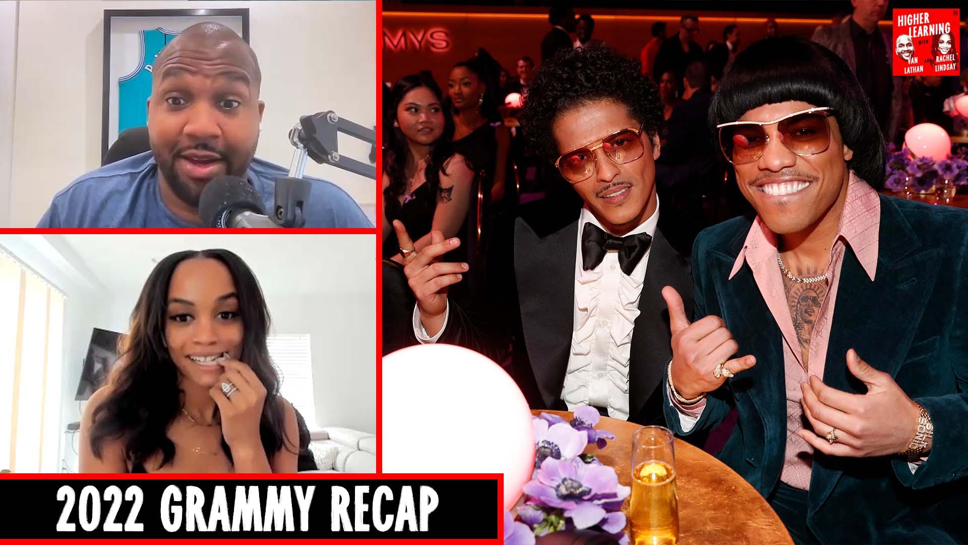 Van Lathan and Rachel Lindsay break down the 2022 Grammy Awards and a couple of unpopular takes regarding Silk Sonic (18:22). Plus, Russell Wilson gets called a square (52:14), and questionable funeral practices are discussed (1:11:59).