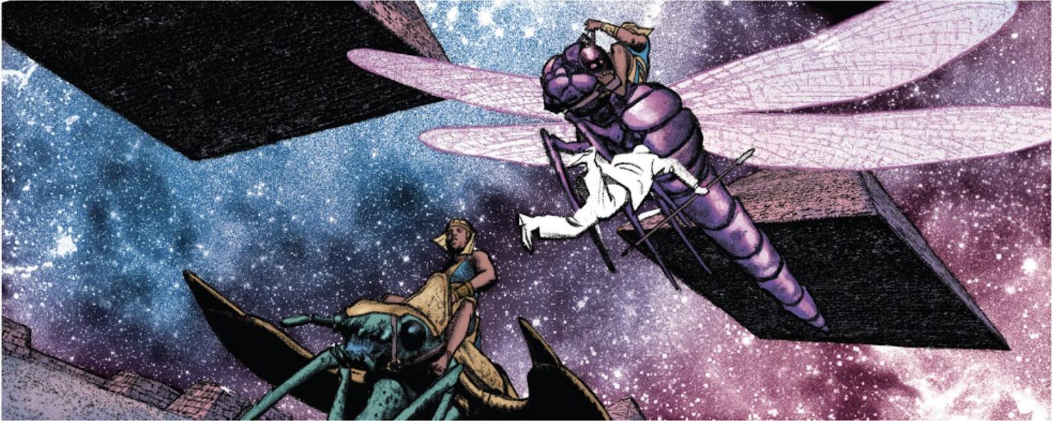 While Osiris reasserts that their avatars are merely meant to observe and that the gods want nothing to do with humanity, Khonshu believes they have a responsibility to use their avatars to help guide the humans—though his violent methods and ideologies don’t feel all that far removed from those of Ammit’s. Khonshu’s mention of the Overvoid feels significant as well, as the interdimensional realm plays an important role in Jeff Lemire and Greg Smallwood’s 2016 Moon Knight run, which continues to be the series’ biggest comics-based source of inspiration. The Overvoid is a strange place to say the least (see the massive flying insect and floating pyramids below), with plenty of visual potential, and it wouldn’t be surprising if the series is saving the setting and an appearance from the gods in their true forms for a later episode. (Perhaps that’s where all the CGI budget went?)