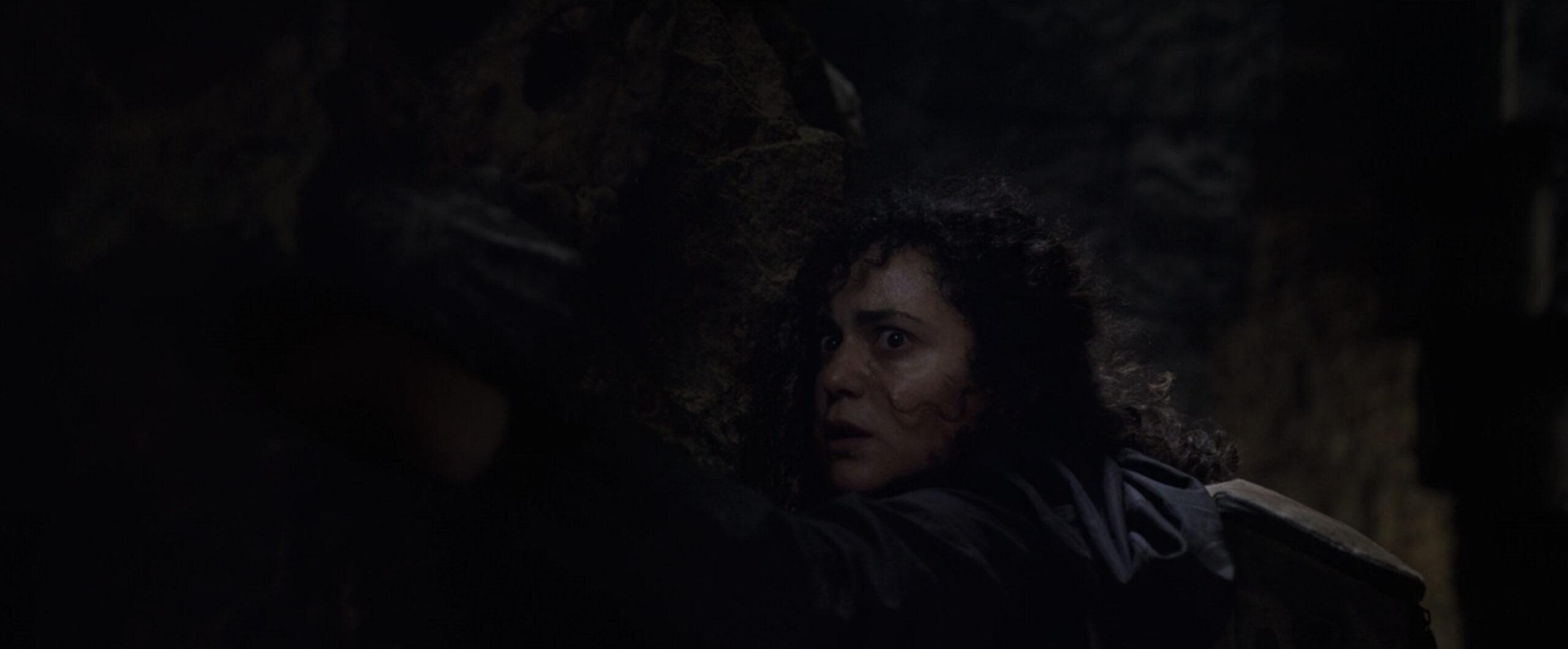 When Steven and Layla cross paths with a Heka priest, whom Layla describes as an ancient sorcerer entombed to protect the pharaoh, the duo is forced to split up, with Layla getting the shorter end of the stick as the Heka priest chases after her. (This is, of course, for the best, because poor Steven wouldn’t stand a chance, while Layla is starting to make me want to see her star in her own Tomb Raider–style spinoff.) As Layla runs away, the music fades, and only her breathing and the Heka priest’s creepy clicking sounds can be heard. While she attempts to cross to the other side of a wide, deep pit by inching along its narrow sides, a ghoulish hand reaches out for her from a crevice in the wall, shortly before she’s pulled into the darkness by the Heka priest and forced to fight for her life.