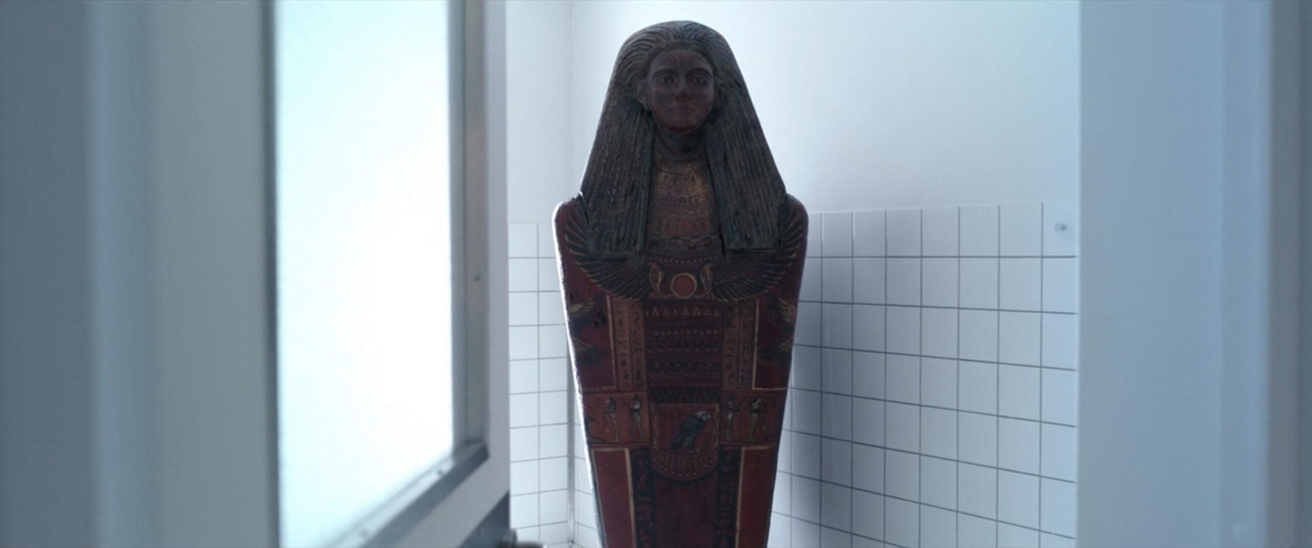 In the final moments of the episode, Marc and Steven come across a mysterious sarcophagus in one of the rooms at the psychiatric hospital. Although neither of them lingers in front of it for long, the sarcophagus shakes violently, as if someone is trying to break free, just as Steven tried to in his own sarcophagus moments earlier. Marc or Steven barely acknowledge it—given the situation, they do have bigger concerns—but it’s clearly something very important. So, what’s in the sarcophagus?