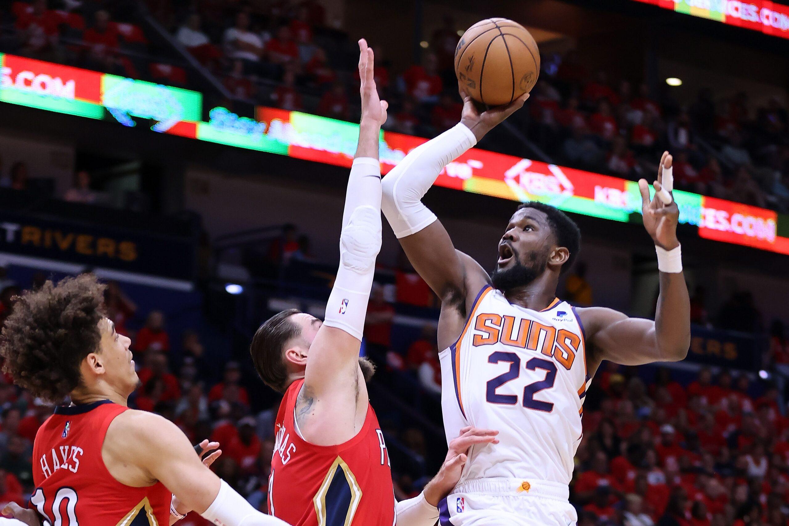 The self-proclaimed “freestyle big” has pared down his game to give Phoenix what it needs in the paint, even after the sacrifice wasn’t rewarded with a max extension last fall. Now, with Devin Booker on the mend and the top-seeded Suns fighting to stave off the scrappy Pelicans, the former no. 1 pick finally has an opportunity to showcase the game he’s built over four eventful seasons.Deandre Ayton was here, but now he’s gone. Phoenix Suns communications director Cole Mickelson just wrangled Ayton away from the court. But in the time it takes to dial a phone, the springy defensive anchor hops from the sideline back to the court.