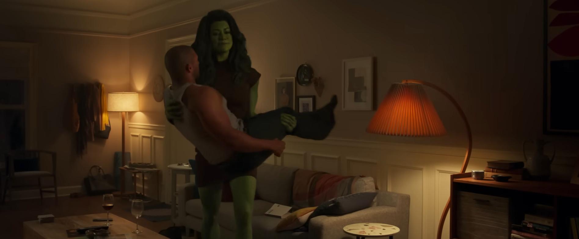 There is one perfect moment in the trailer for She-Hulk: Attorney at Law, a less-than-two-minute-long teaser that was viewed over 78 million times in the 24 hours after it dropped last week. Jennifer Walters—titular attorney at law, intermittent She-Hulk—is not quite like her green cousin, Bruce Banner. Where he becomes an angry, unrecognizable Neanderthal when he Hulks out, she transforms into a more powerful, confident, self-possessed, and greener version of her human self. And so, when Jennifer goes on a Bumble date with a petite man who most certainly smells what the She-Hulk is cooking, we see her escort said man back to her apartment, quite literally sweep him off his feet, and carry him toward her bedroom for what we can only assume is her own special version of the Hulk smash.