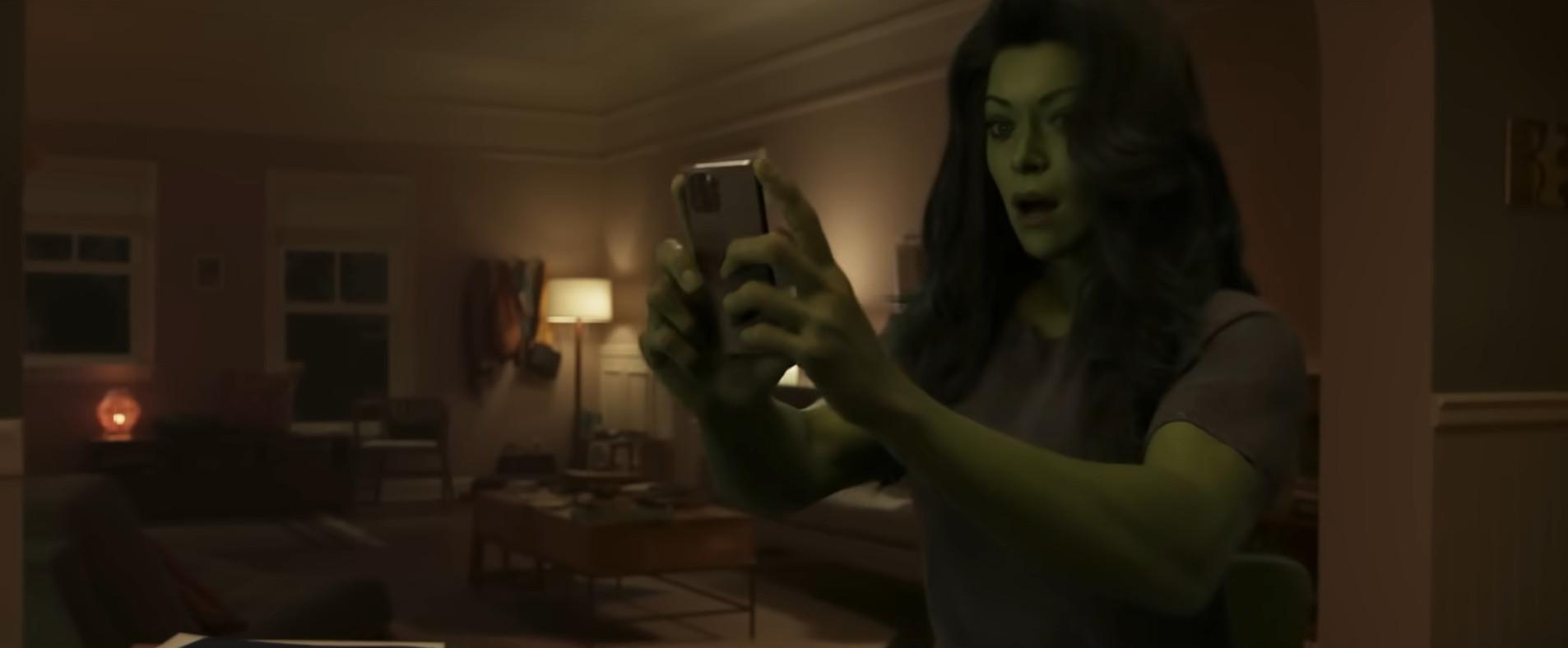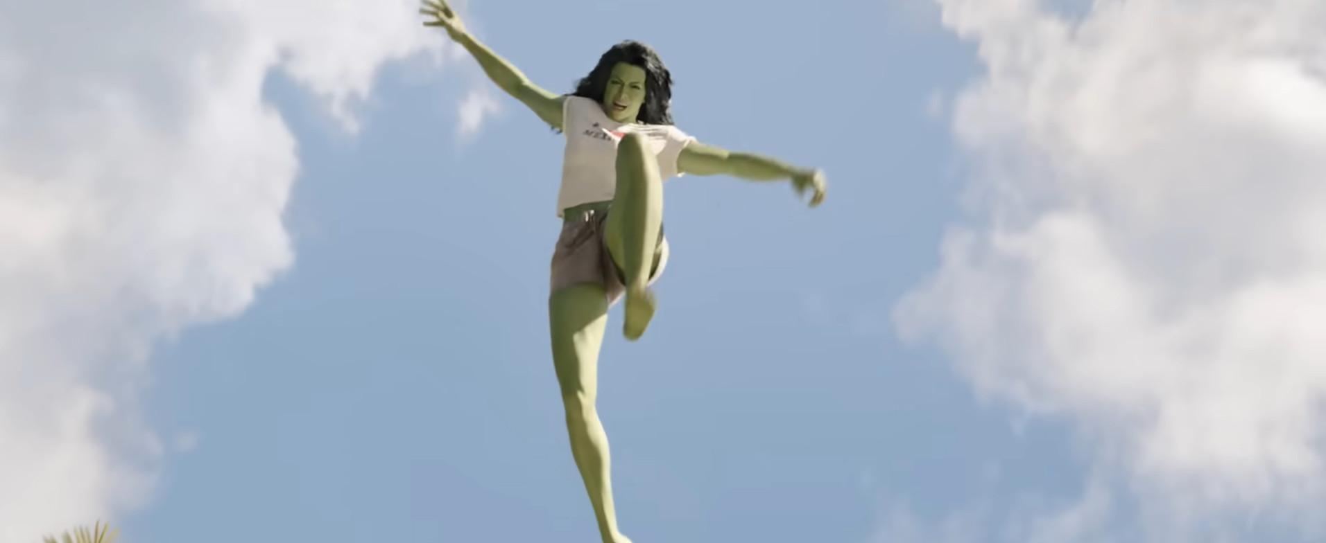 Excluding that one man-toting moment, however, the She-Hulk trailer was not warmly received. The low-budget-looking CGI was rife for jokes—for example, one could say that the green hue of Tatiana Maslany’s She-Hulk looked more like the Jolly Green Giant tore through an Ann Taylor Loft Memorial Day sale than like Jennifer Walters got juiced up with beefy, beefy gamma radiation. And all of those jokes were mostly fair and accurate—but the problem with this early trailer wasn’t a matter of which shade of green Marvel went with. The problem was a matter of size. Stay with me here …