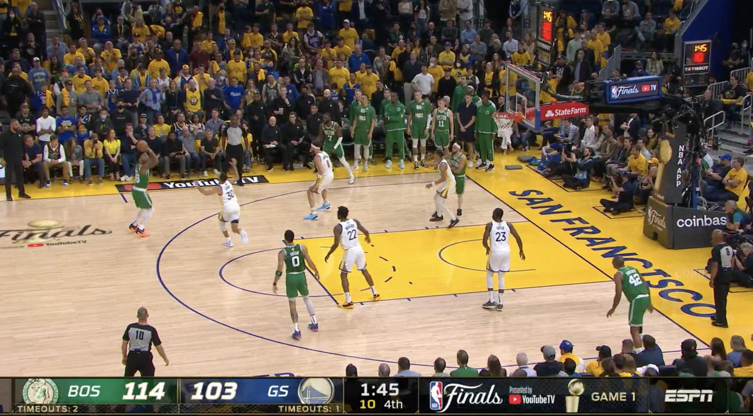 … it doesn’t seem that far-fetched that a Celtics team that entered the Finals averaging nearly as many 3-pointers per game as the Warriors in the playoffs despite playing brutal Milwaukee and Miami defenses, and that has now topped 20 triples four times in this postseason, could keep on drilling lightly contested or flat-out wide-open 3s. It’s on the Dubs, then, to find a way to stop conceding them.