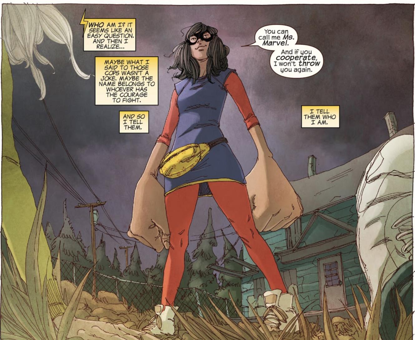 In the comics, Kamala’s stretchy limbs, along with her often awkward inability to initially control them, serve as an effective metaphor for puberty and the challenges of trying to balance her life at home, school, and as a new superhero. Even more, her shape-shifting abilities—and how she uses them to transform herself into Captain Marvel—are a means through which Kamala can hide from her identity, as she becomes the classically beautiful white, blond superhero that American society has made her believe she needs to be. But over time, Kamala comes to realize she doesn’t need to pretend to be anyone else; it’s another effective storytelling tool that can measure her growth as a character.