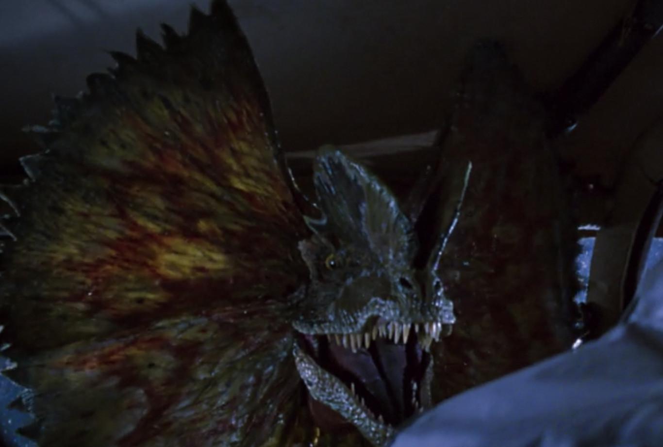 Schuster: The dilophosaurus plays a few big roles in Jurassic Park. Its initial absence from its enclosure is one of the early bummer points for Dr. Grant (Sam Neill), Dr. Sattler (Laura Dern), and Ian Malcolm (Jeff Goldblum) on their initial tour of the park, and it single-handedly stops Wayne Knight’s Dennis Nedry from getting to the boat during the tropical storm and delivering stolen dino-DNA to an outside corporation.