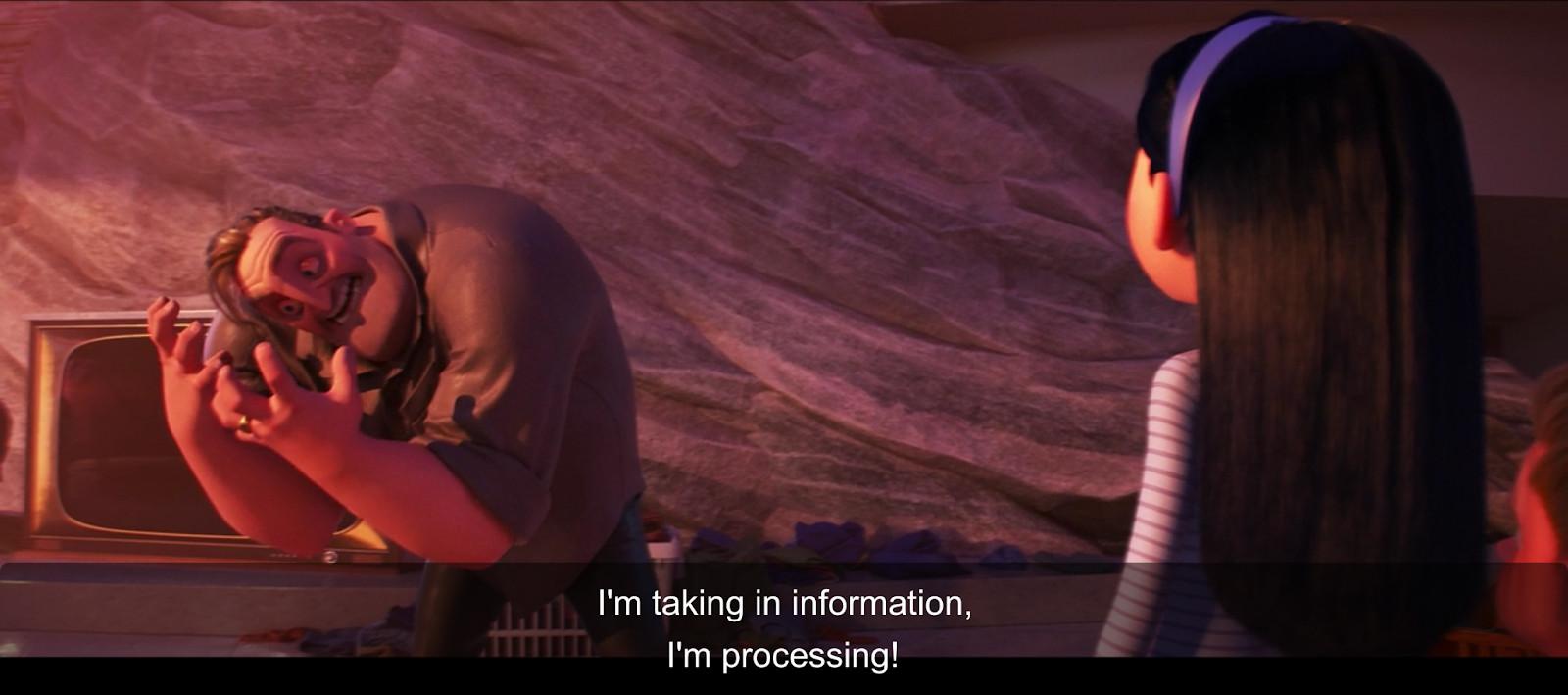 As a kid, the Office Space–like drudgery of the scream factory flies right over your head, though I do recall my dad being especially entertained by Roz. As a grown-up, though, there’s an additional layer to Monsters: the contrast between the wide-eyed creativity of its world-building and the stultifying corporate culture that comes with any job, even one in a parallel dimension. Pixar knows how to cater to every audience, from kids to the parents they’ve dragged with them to the theater. Monsters, Inc. sticks with us as we age from one into the other.