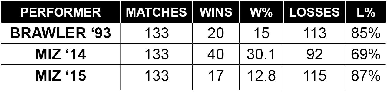 And, to be sure, these represent some of the worst years, stats-wise, of Miz’s career, but there are a lot of bad years from which to choose since he won his first WWE title: