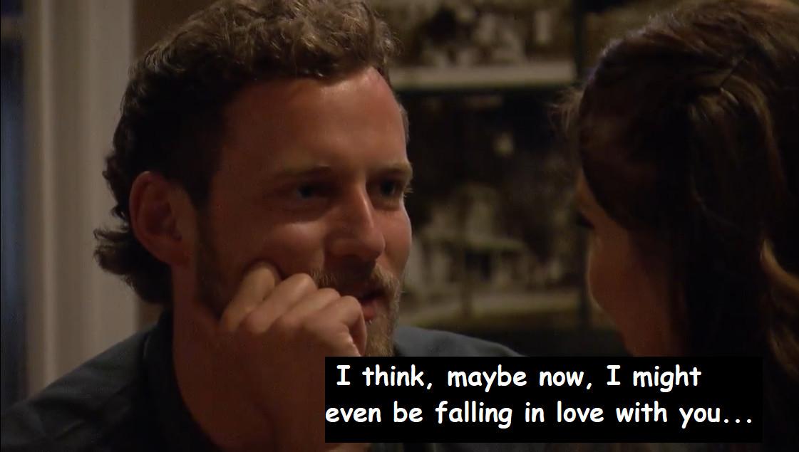 That fact is probably how Rachel found herself on her first ever one-on-one date with a young carnie-entrepreneur mere moments before she was supposed to meet his family. It’s also probably how Gabby found herself with a trio of men who are still saying they “really like” her, and why her greatest declaration of feeling is, and I quote, “I think maybe now I might even be falling in love with you.” But what are two Bachelorettes to do when time is running out and they’re contractually obligated to run-and-jump-hug seven dudes after having spent just a few weeks getting their sea legs under them?