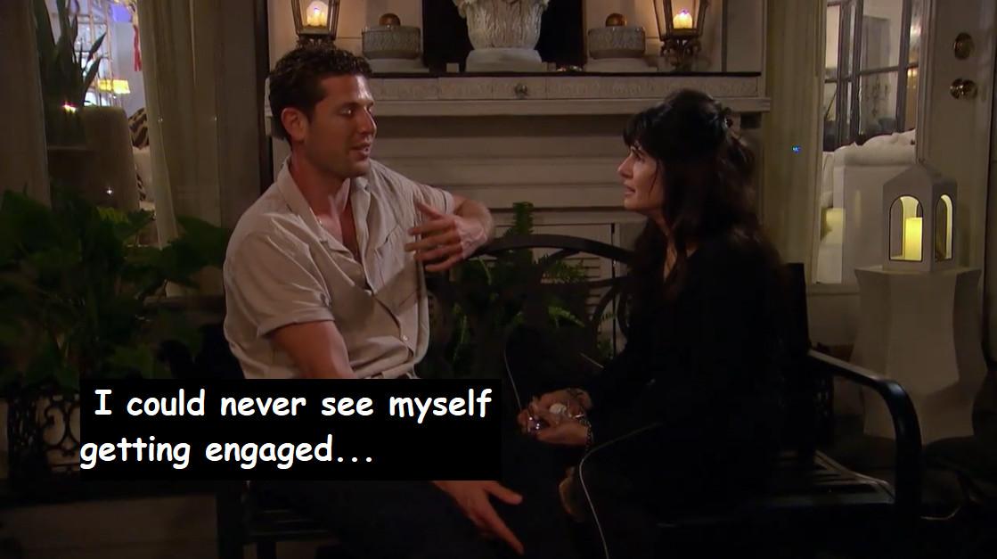 Oh yeah, Jason definitely isn’t someone who can get engaged after six weeks on a television show. Jason’s mom immediately bursts into tears at the thought of Jason losing Gabby, but not in a, like, Peter’s mom sort of way. Jason tells his mom that getting engaged right now doesn’t feel realistic to him, but that could change in the next two weeks. And I guess we’ll just never know if he tells Gabby that he’s feeling uncertain, because if they got a DTR bench debrief, we do not see it.