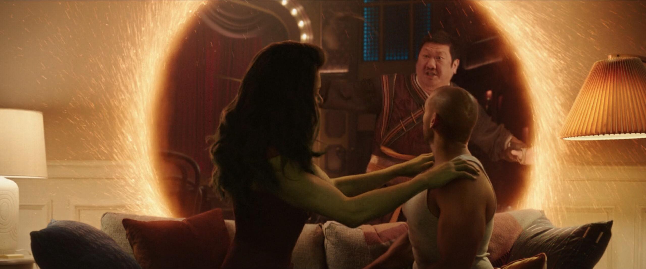 After being known by a single name for so long—like Beyoncé—Wong has been given an unforgettable nickname, with Madisynn calling him “Wongers.” The unlikely bond between the two, reinforced as they discuss their favorite drinks during the stinger (Wong, we learn, is a gin and tonic man), makes them an instantly iconic duo, against all odds in this dimension and every other. (Though I do worry about the Wong variant who is still out there naked and running away from clowns, as mentioned in Multiverse of Madness.) Wong’s eventual team-up with She-Hulk later in the episode, which occurs during a battle against real demons in a fake castle for cheap magic, is also one of the more entertaining and chaotic sequences of the series so far. All of this takes place after he accidentally interrupts his lawyer at home just as she was about to carry her date over to the bedroom: