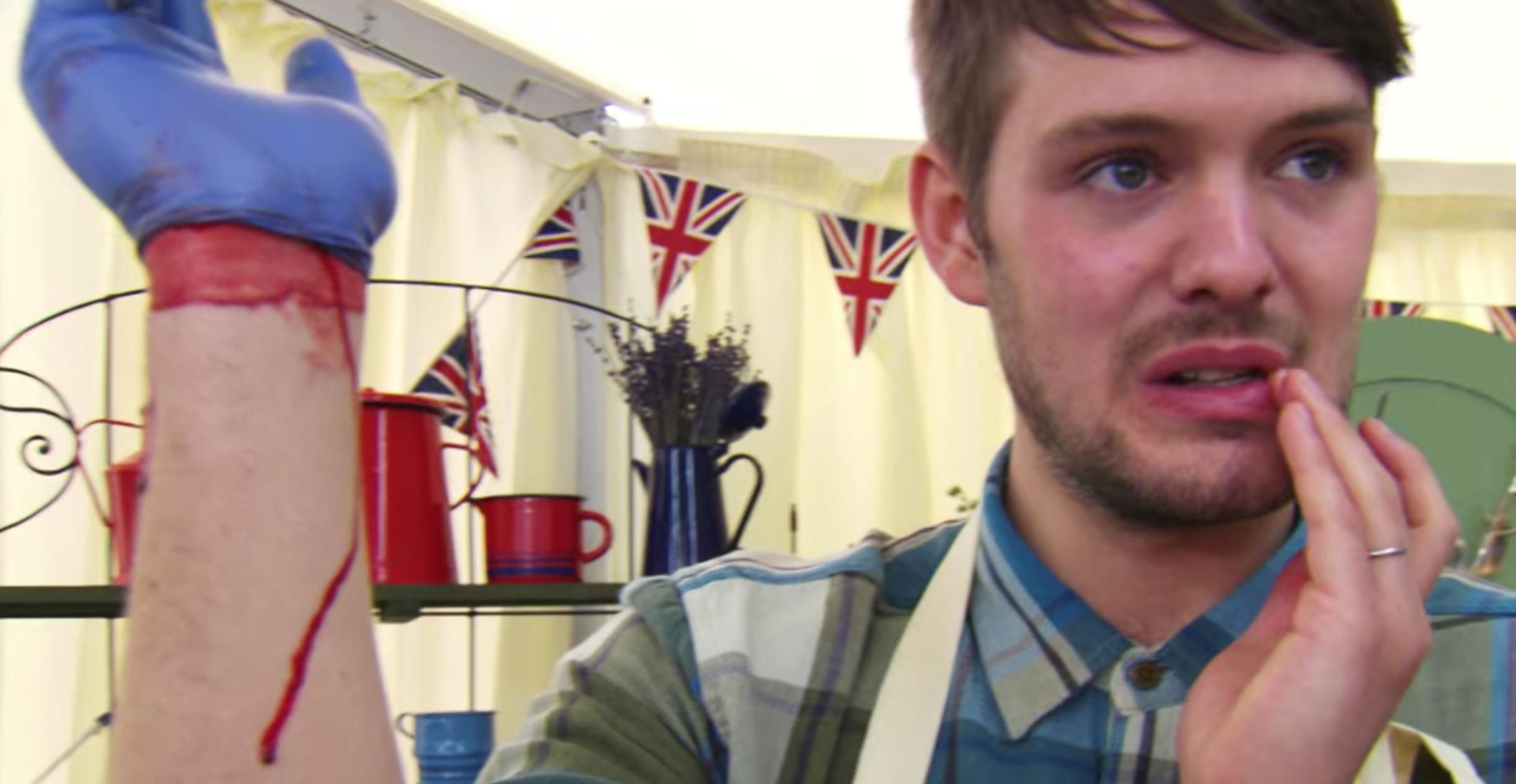 John’s time on the show teaches us two important lessons. Never use salt as a substitute for sugar, particularly when making rum baba. And baking strudel is the most dangerous activity this side of free solo climbing. Behold a sequence more befitting of a Quentin Tarantino film than Bake Off: