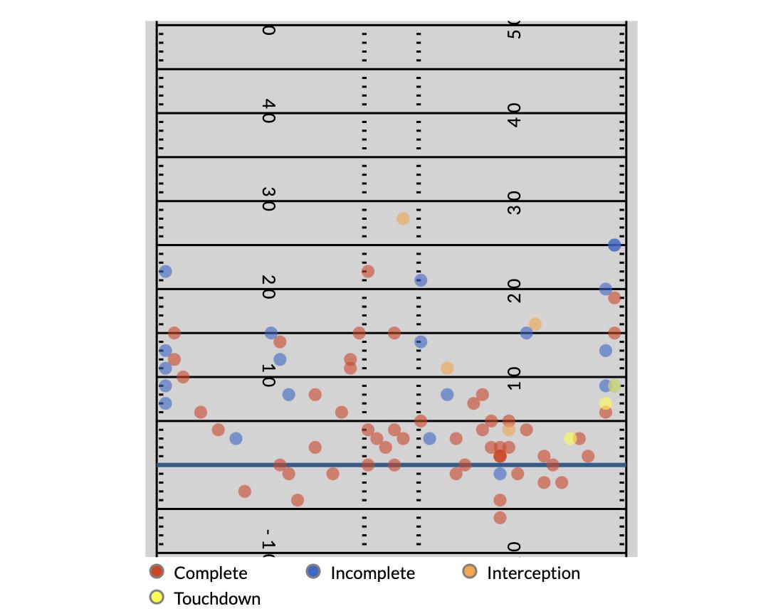 You see that lone dot at the 20-yard line in the middle of the field? That was a free play where Trubisky was able to chuck it up to Pat Freiermuth without any risk of turning the ball over.