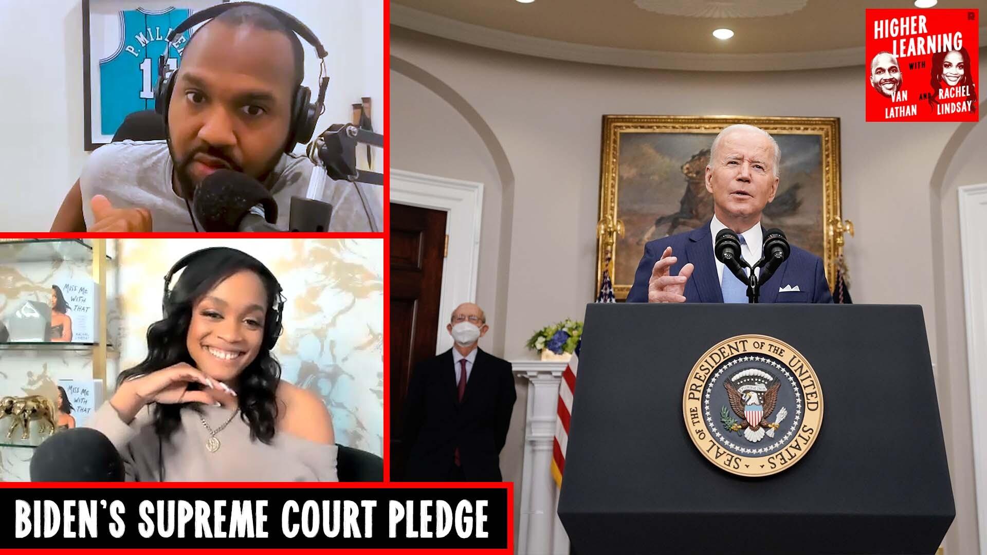 Van Lathan and Rachel Lindsay react to Joe Biden’s pledge to nominate a Black woman to the Supreme Court (9:37), before Republican candidate Tamika Hamilton joins to discuss her congressional bid as a Black woman in the GOP (24:38). Then, a breakdown of Joe Rogan’s problematic conversation on blackness (1:09:56).