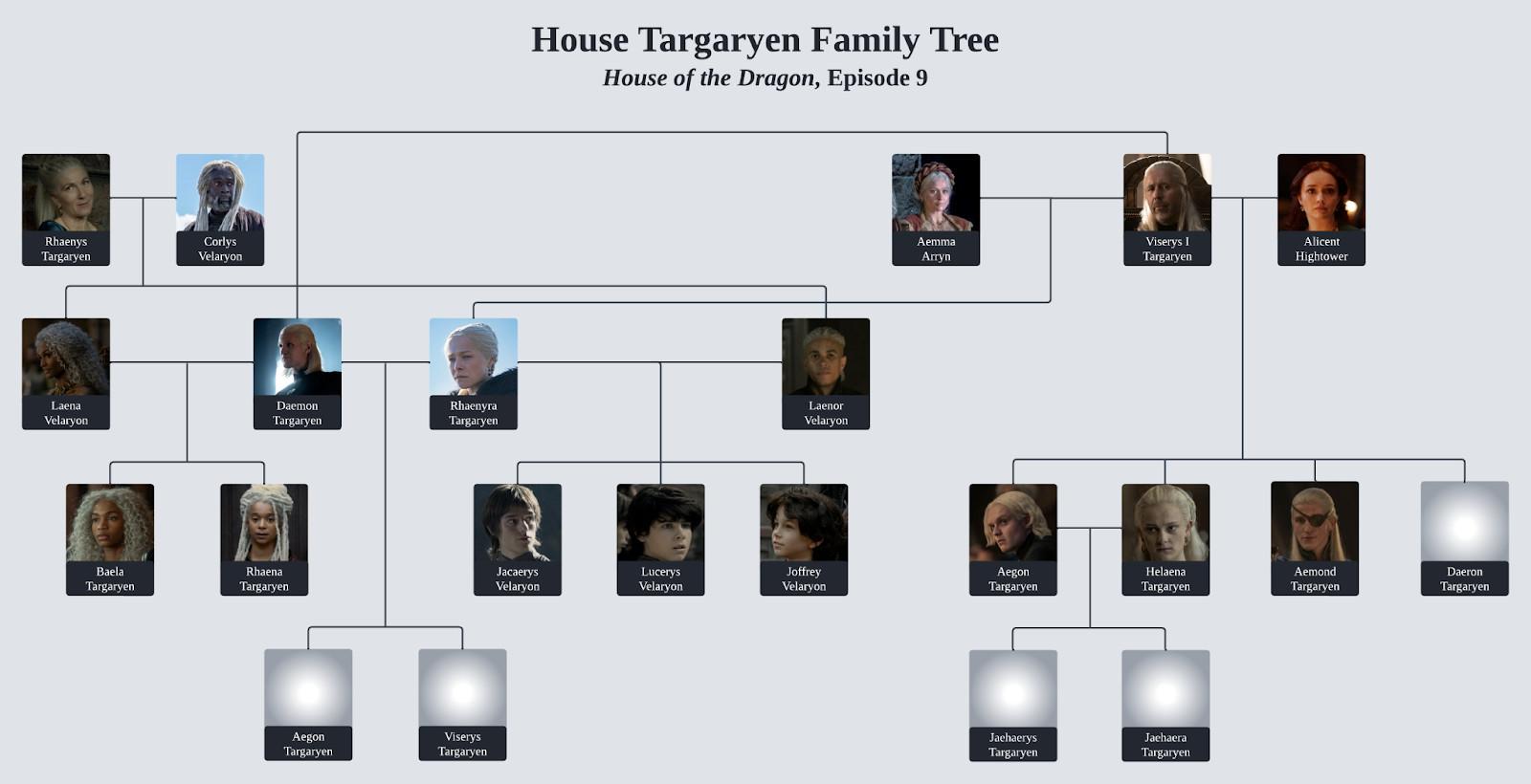 We also got a glimpse of Aegon and Helaena’s children, Jaehaerys and Jaehaera. Only Maelor, their youngest child, was nowhere to be found, so I’m removing him from the family tree for now: