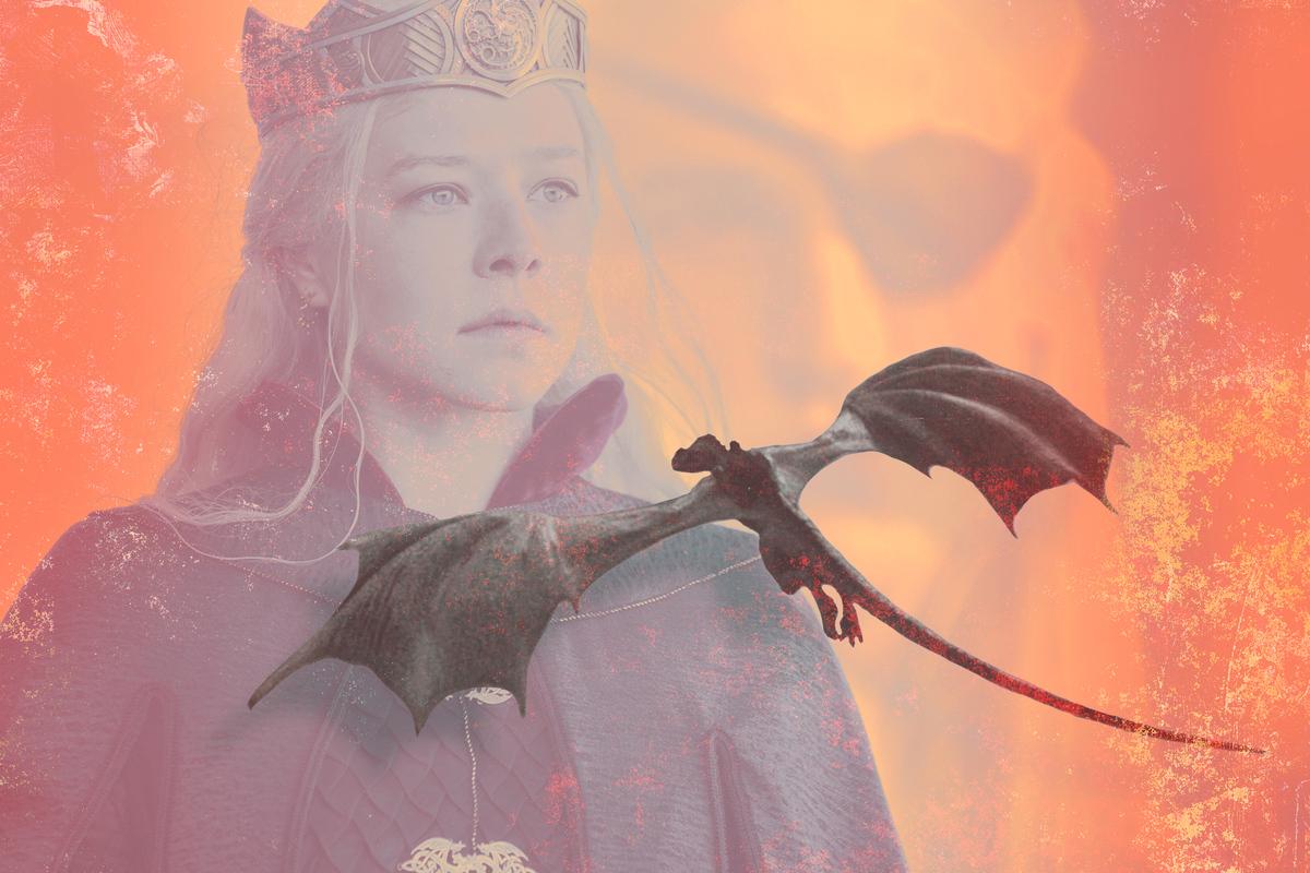 At the black council, Daemon rattles off the count of dragons. The greens have four: Aegon’s Sunfyre, a relatively young dragon who hatched shortly after the newly crowned king’s birth; Helaena’s Dreamfyre, a roughly century-old dragon who was once the mount of Rhaena Targaryen and whom Helaena doesn’t fly often; Aemond’s Vhagar, the massive instrument of war who dates back to Aegon’s Conquest; and Daeron’s Tessarion, another young dragon (we haven’t yet met Daeron, the youngest son of Alicent and Viserys; showrunner Ryan Condal confirmed he exists in the show, though he was mum on whether he’ll appear in Season 2).