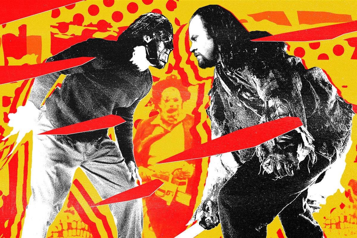 It’s Allhallows Eve, the night for ghouls and goblins to roam the streets. Pro wrestling has done a lot of horror-movie-inspired matches over the years—some great, some cringy and silly. Here is a smattering of the coolest variations of horror movie wrestling, along with comparable horror films to check out.