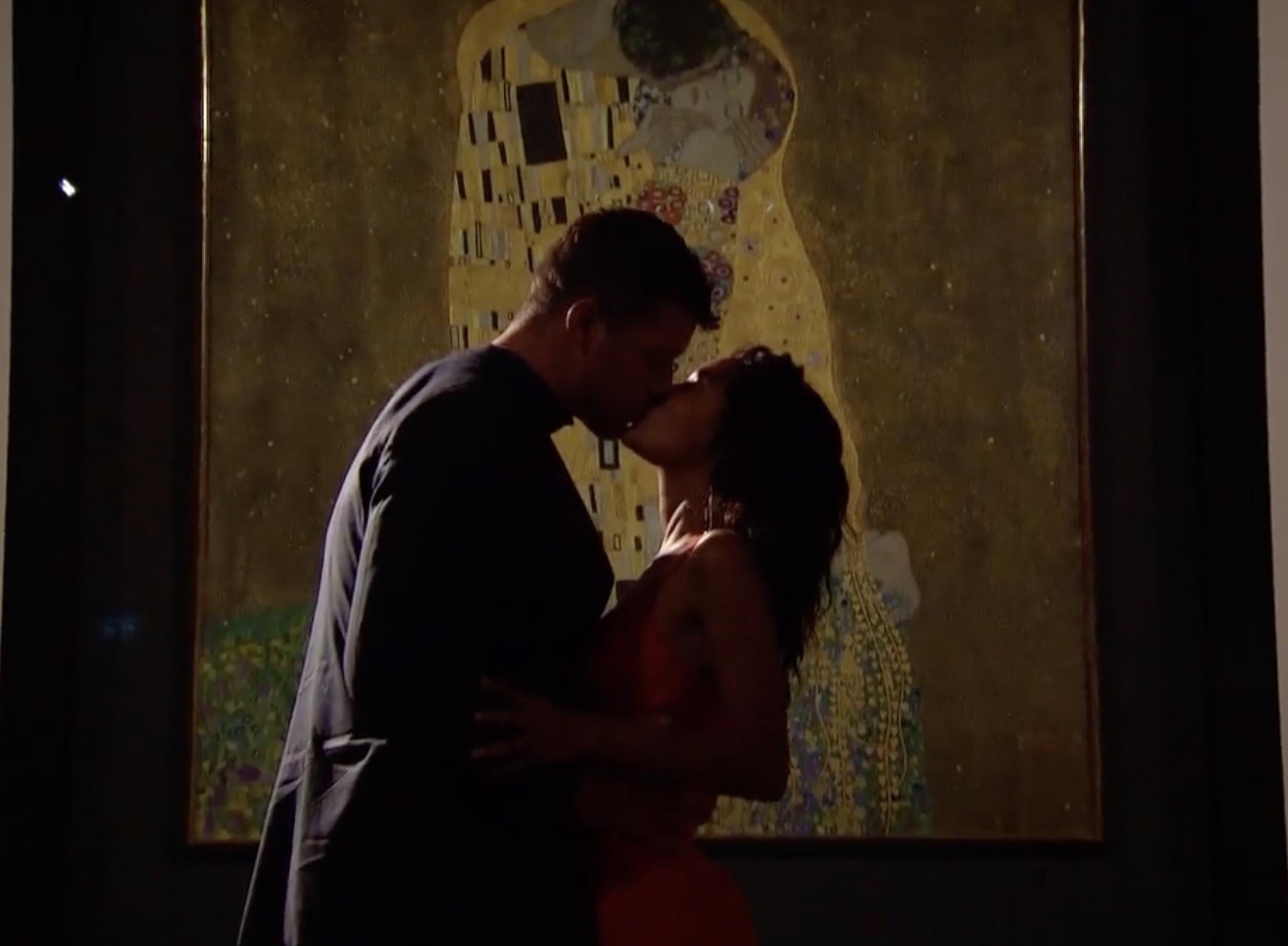 During their date in a museum, Clayton leads Serene over to its signature painting: Klimt’s The Kiss, a painting that launched a million art school dorm-room posters. It shows a pair of lovers in a field of flowers, their passionate embrace wrapped in gold like a holy halo. Clayton asks if they can recreate the painting—slick move, pal.