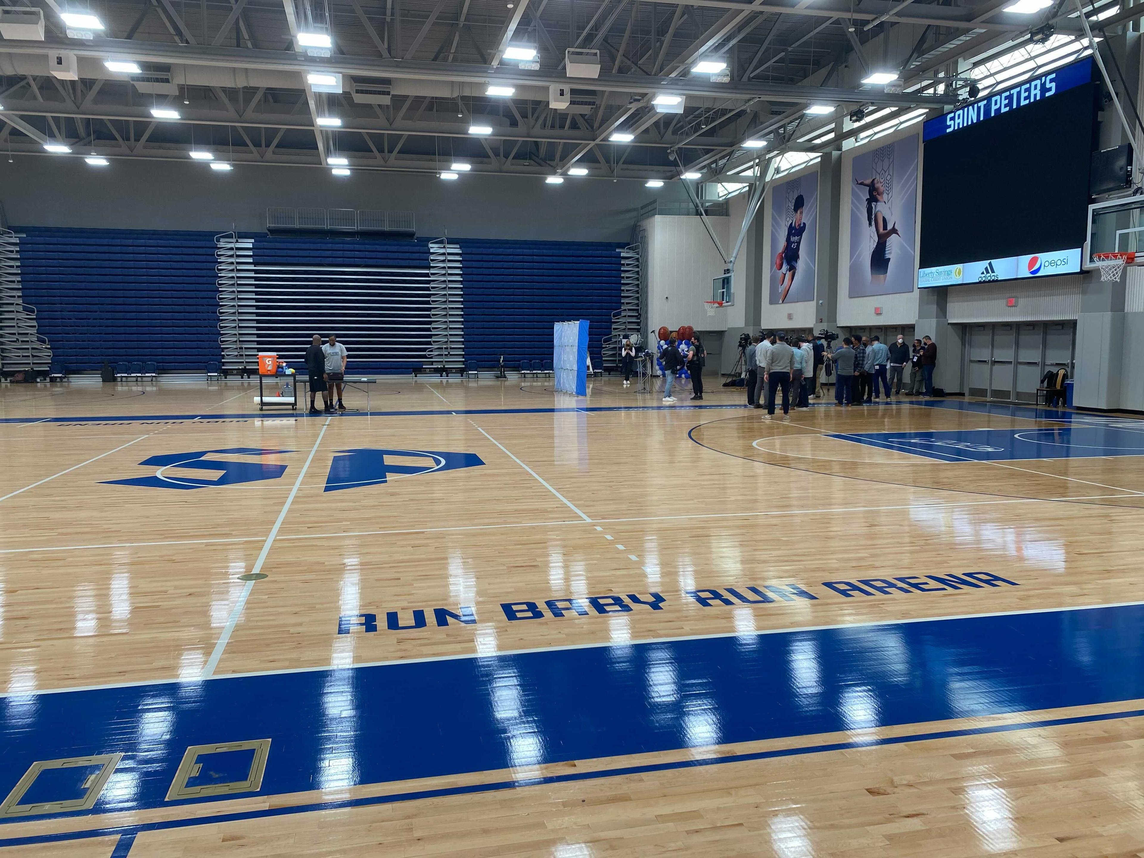 The “arena” did receive a $5 million renovation last year, and is now known as “Run Baby Run Arena,” although almost all the outward signage still says “Yanitelli Recreational Life Center.” While the renovations were happening, the team played its home games at Division III New Jersey City University’s home court and practiced in an unheated high school gym. “It was humbling,” says head coach Shaheen Holloway.