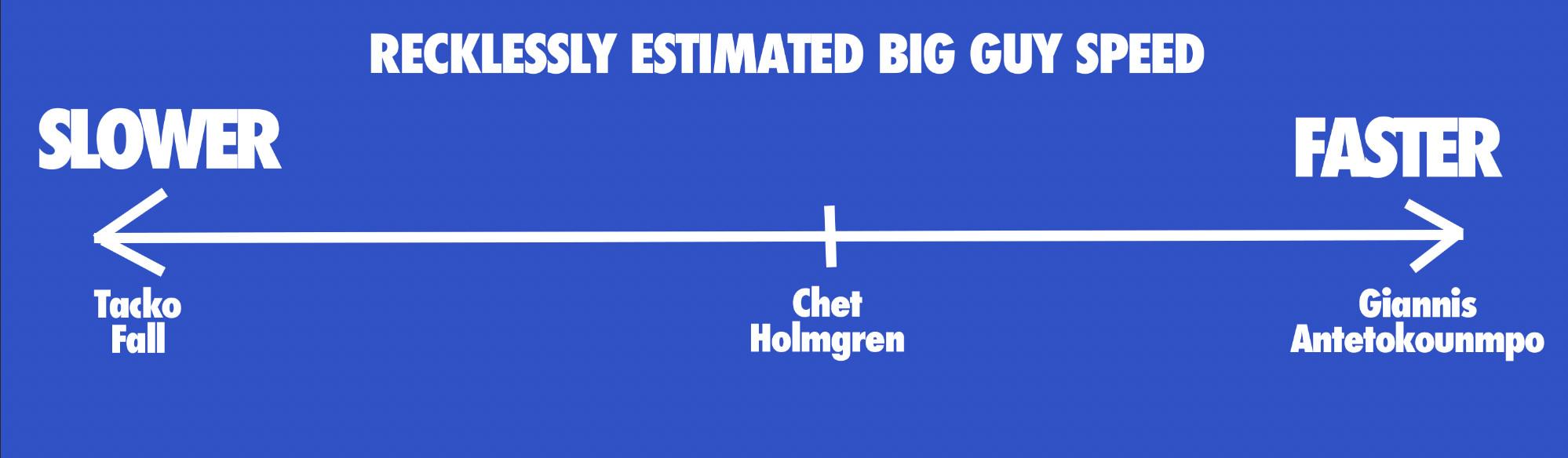 My gut says that Chet lands somewhere below the high mark of Gasol but somewhere in the realm of a very good, versatile (but not dominant) scorer and a highly impactful, switchable paint protector who’s capable of bothering and contesting offense at all levels of the floor; “range of impact” is a phrase that I just keep coming back to. Holmgren is likely a critically important secondary star who spends his career being adored by hoop nerds and overlooked by a chunk of the basketball community because his production might not be eye-popping.