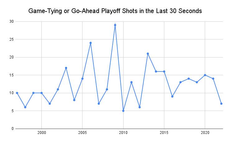The broader problem with the 2021-22 postseason is that it has lacked that sort of late-game pizzazz, even with a roughly standard amount of high-leverage possessions. Thus far, these playoffs feature seven made field goals in the final 30 seconds of a game that either tied the score or flipped the lead, according to Stathead. That’s not an unprecedented number, but it’s on the low end, especially compared with recent postseasons that have roughly doubled that count.