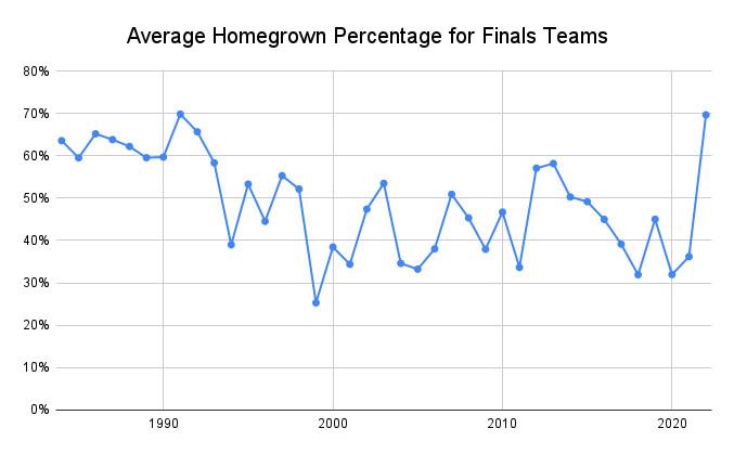 Least Homegrown Finals Teams Since 1984