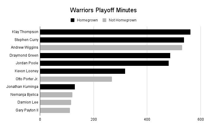 Meanwhile, Golden State drafted five of the six Warriors to play the most minutes in the playoffs, though more of the team’s depth has come from external sources.