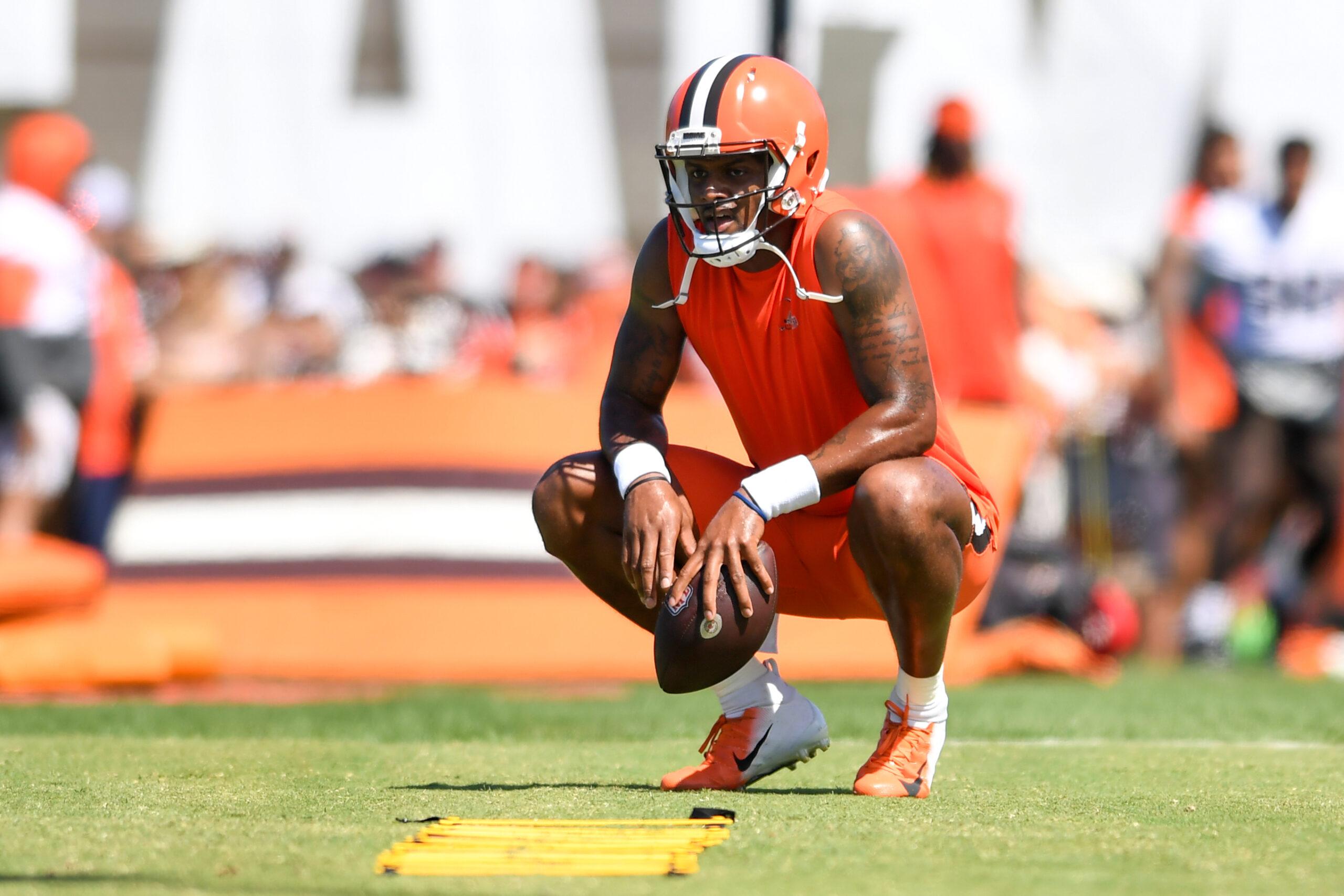 Photo by Nick Cammett/Getty ImagesBEREA, OH – JULY 30: Deshaun Watson #4 of the Cleveland Browns rests after running a drill during Cleveland Browns training camp at CrossCountry Mortgage Campus on July 30, 2022 in Berea, Ohio.