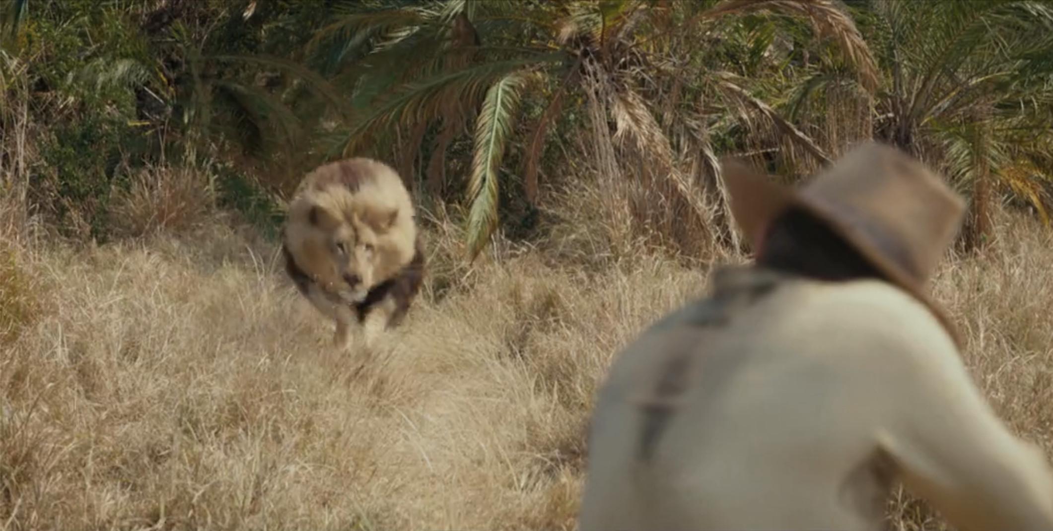 In one scene, a large male lion pounces at him just as he fires his gun. Fortunately for Spencer, it’s dead by the time it lands on him; unfortunately, it is still a lion. The average male African lion can weigh anywhere from 330 to 550 pounds and can reach speeds of 50 miles per hour. This one had momentum and pointy objects aimed in its direction.