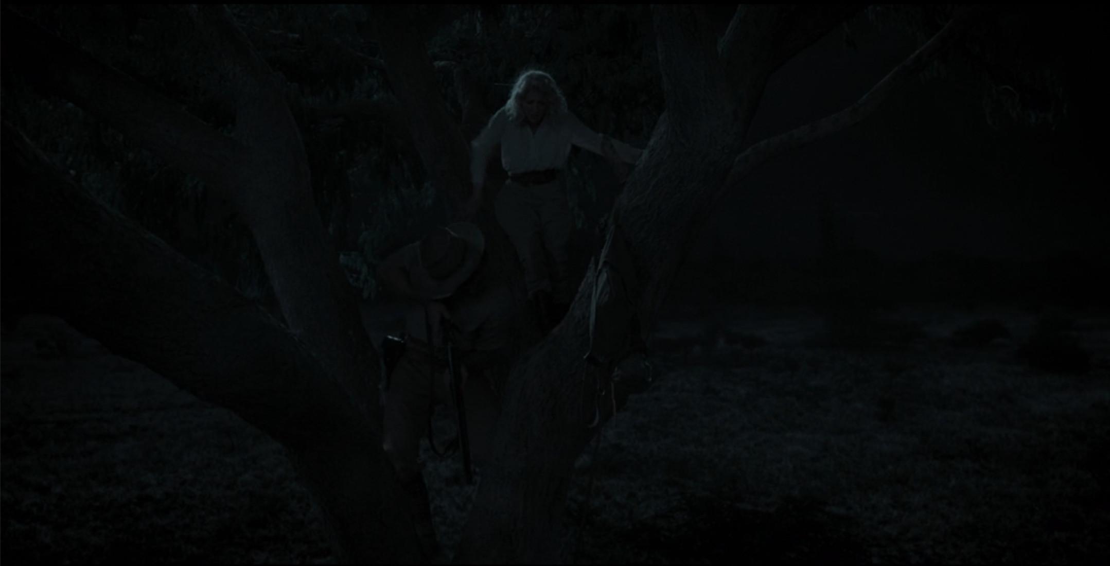In 1923, both Jack and Spencer are in thrall to blonds. (This, apparently, is a congenital Dutton trait.) With Jack’s marriage to Elizabeth imminent, the two share what seems to be their first night together. The next day, Elizabeth is shot in the stomach, Jack is shot in the shoulder, and both of their fathers are killed. In Spencer’s case, hours after asking Alexandra to marry him and in the wake of extensive premarital canoodling (again, it’s a distressingly condensed timeline here, but I imagine time seems of the essence if everything is constantly trying to kill you and everyone you know), the pair are charged by an elephant and left to fight off lions and hyenas in a tree overnight.