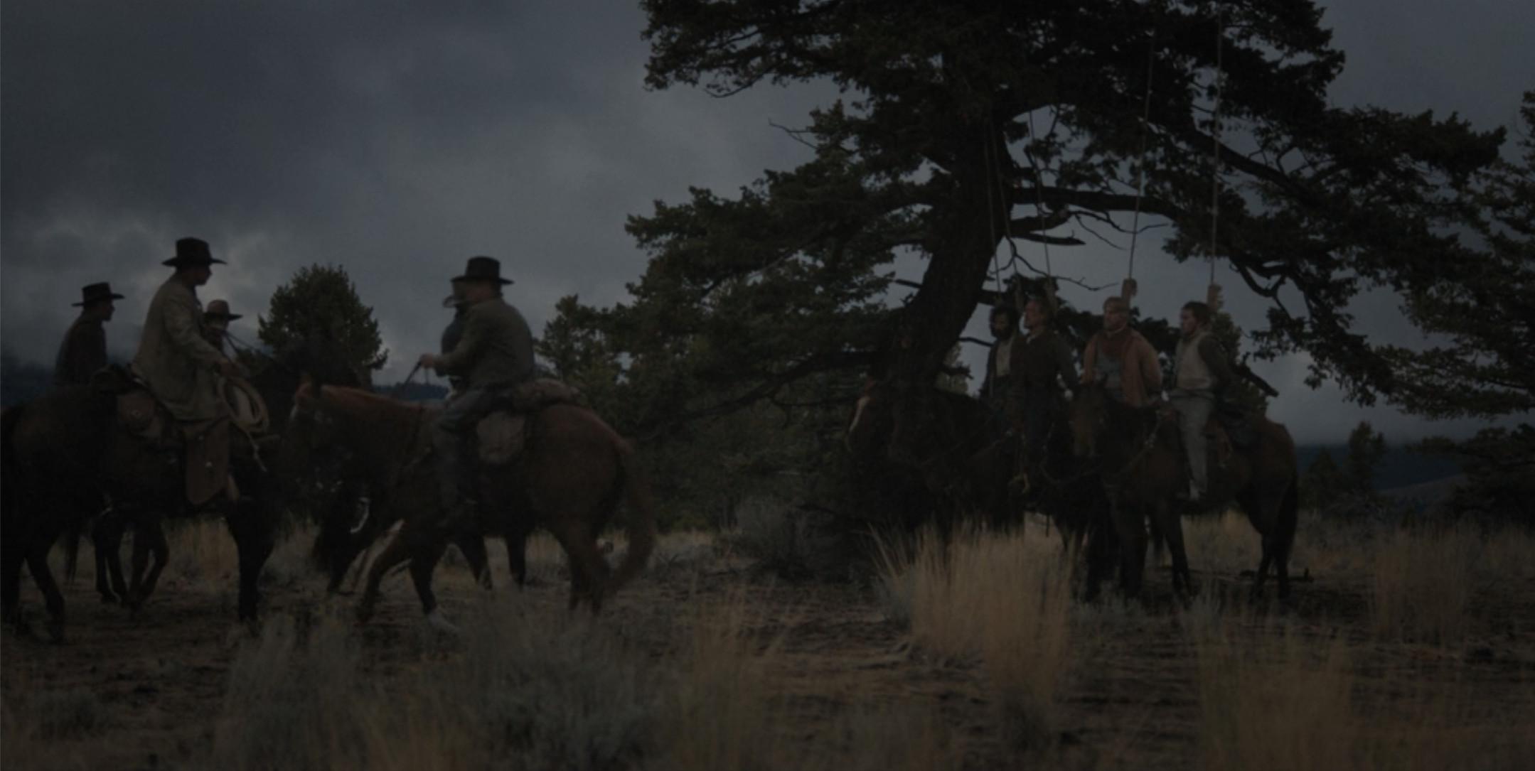 It is a truth universally acknowledged that a Dutton in possession of a murder plot must not face any legal consequences whatsoever. So it is when the Yellowstone’s cowboys round up Banner and four other meddling sheepherders with the audacity to feed their fuzzy ruminants on Yellowstone grass. In return, Jacob puts them on horses with their hands tied and nooses around their necks. Four of the horses swiftly decide that they’d rather not be involved and wander off as their riders hang. Banner manages to keep his mount in place long enough to get his hands free, which is a testament to either Banner’s husbandry prowess (again, investigate this man!) or the horse’s particular fondness for sheep. In a completely baffling display of unexplained bodybuilder strength, Banner then climbs his own noose and hangs from it with one hand as he cuts through the rope with the other.
