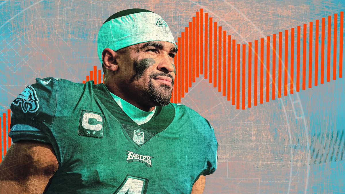 Smith, whom Brown joined to form one of the league’s most potent wide receiver duos, has watched as Hurts has steadily grown as a quarterback. Though they split up when Hurts left for Oklahoma, they reunited in 2021, when Philly drafted Smith 10th overall after he won the Heisman at Alabama in 2020. This season, at the helm of an offense loaded with skill talent and powered by a dominant line, Hurts has gone 16-1 as a starter, while the Eagles lost both games he missed with a shoulder injury, and he grew into one of the league’s top-performing quarterbacks, finishing as Pro Football Focus’s fifth-highest-graded QB. “You definitely see the improvement,” Smith told media ahead of the Super Bowl.