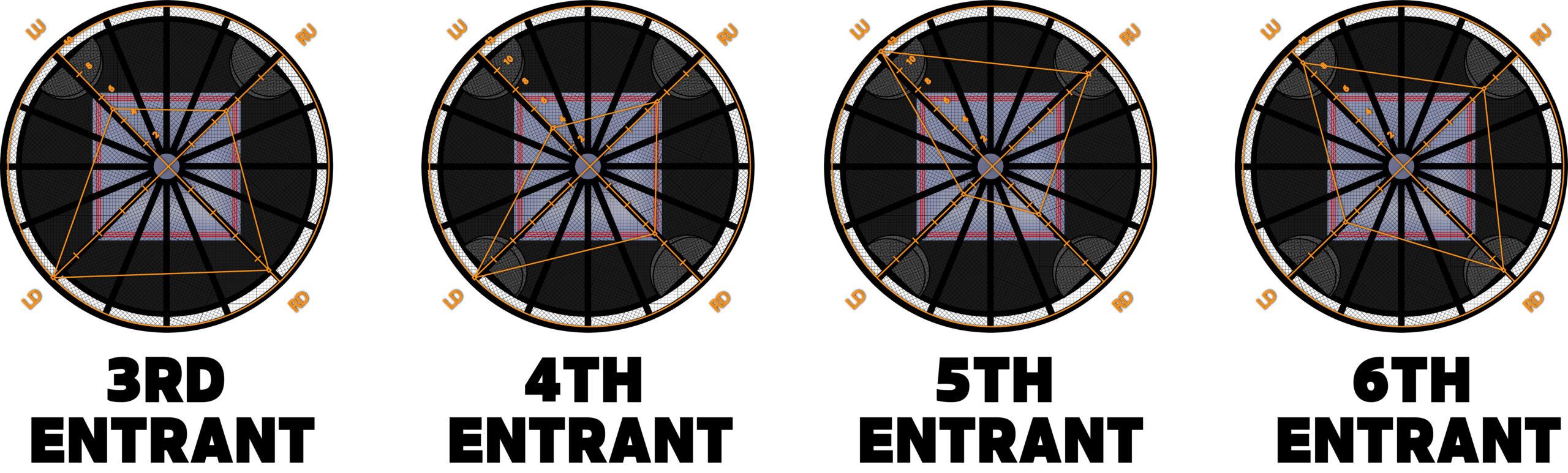 As you can see, of the first 19 matches in the original Chamber, just TWO have been won by someone in the bottom right pod, and that someone was named Triple H, who won twice from that position as part of his record four times overall, including the third match, which was his second consecutive win and also the first not to release participants in the exact same clockwise order, though they just went counterclockwise instead.