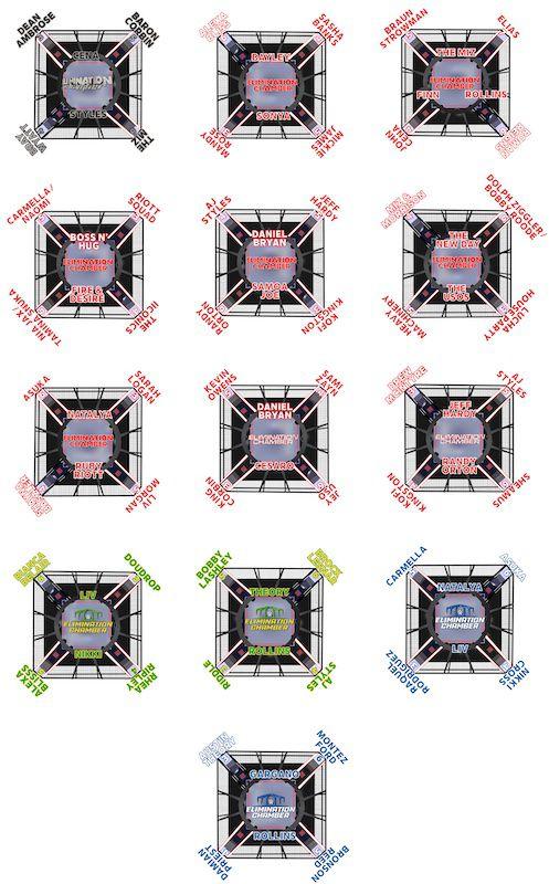 HBK, Goldberg, Edge, Kurt Angle, Big Show, Finlay, JBL, John Cena, Rey Mysterio, Kane, Randy Orton, The Miz, Daniel Bryan, the New Day, Ryback (who won, was an ENORMOUS star at the time, and looked well on his way to a major main event career), Sasha Banks, Jeff Hardy, AJ Styles, Brock Lesnar, this year’s Women’s winner Asuka, and this year’s Men’s MVP Montez Ford all started in the top right pod. Even absolute cannon fodder like Baron Corbin and Elias were explicitly put in this pod to generate heat throughout the match.