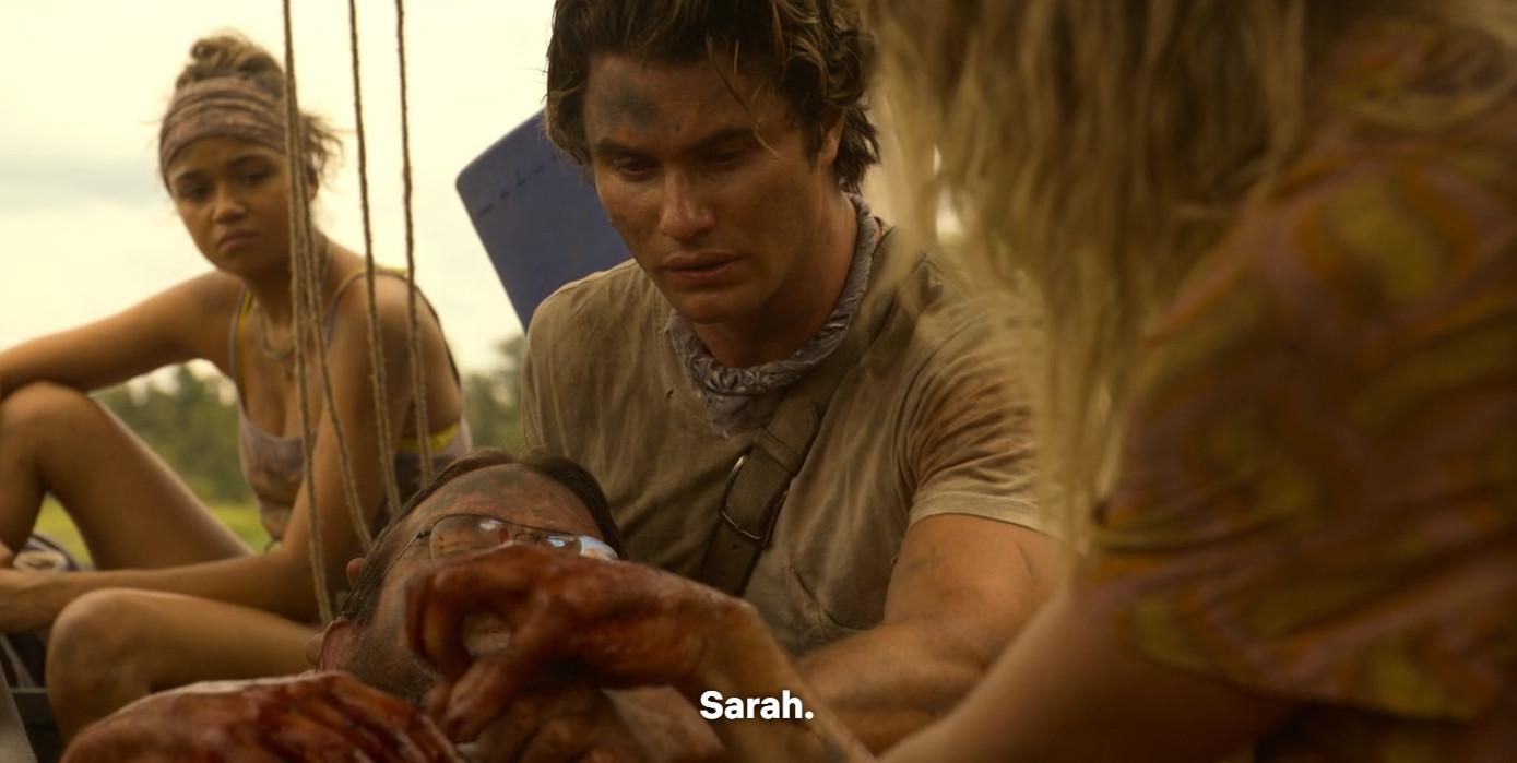 And that, my friends, is symbolism. Eventually, however, John B and Sarah make up and head to South America in the Cameron jet—and I’ve never actually seen someone emerge from a private plane dirtier than when they got on. John B is briefly cleansed by the waters of El Dorado (oh yeah, you guys, they found it—they’re rich!), but down to the bitter end, he is committed to the grime life, doing a little “on-three” hand pile with Sarah, his dad, and his dad’s oozing blood.