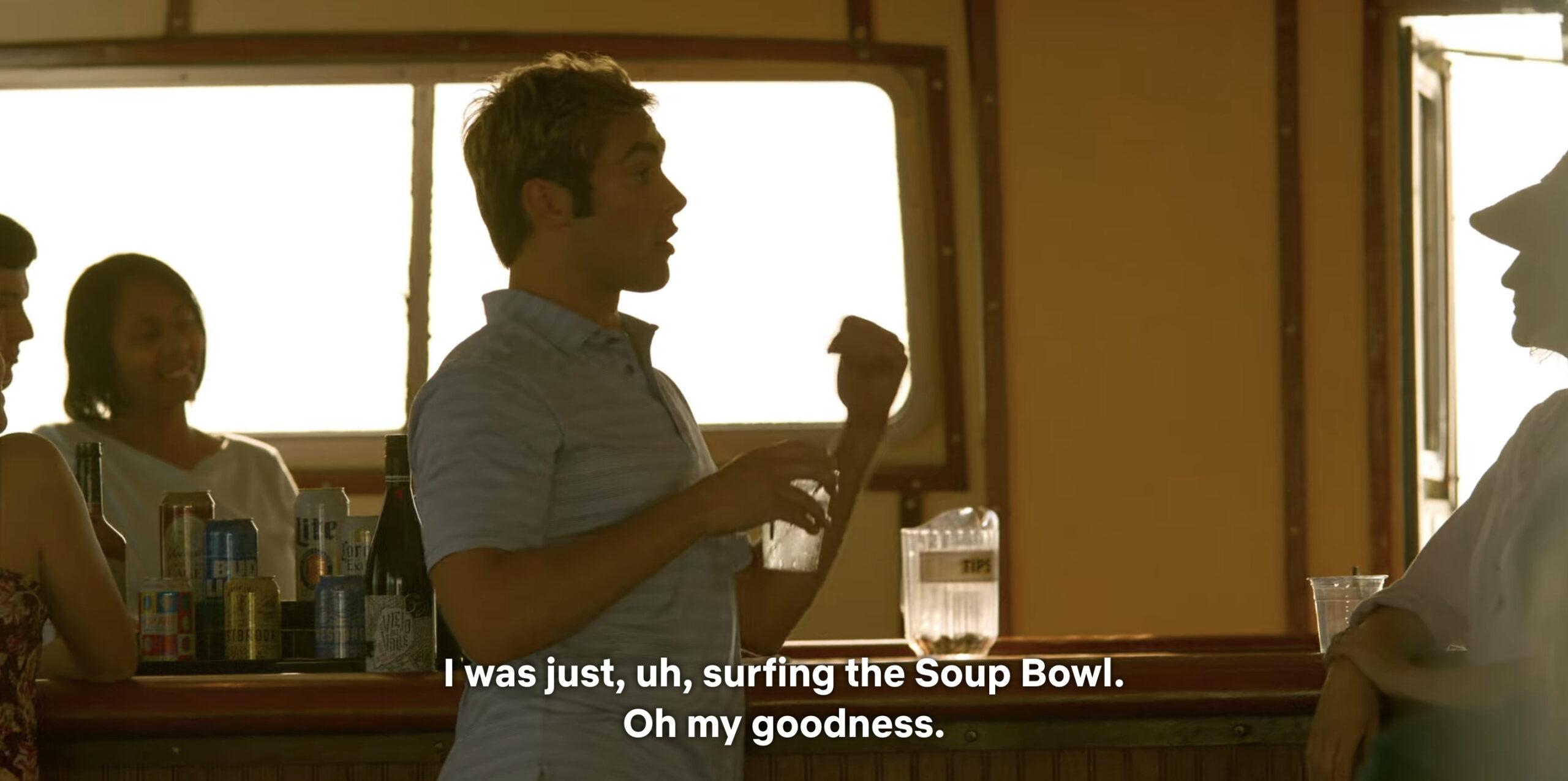 Every Kook’s only Black friend saw his role reduced even further this year: One of his only lines is paying Topper a compliment after he “shreds it” windsurfing. Personally, I’m still waiting for the subplot where he has a profound identity crisis because he realizes that he’s been hanging out with the descendants of people who literally killed a freed slave before stealing his land.